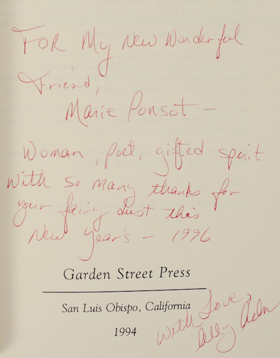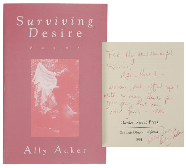 San Luis Obispo, CA: Garden Street Press, 1994. First edition. Softcover. A paperback original collection of poems. A fine copy in wrappers. Signed and very warmly inscribed by Acker to poet Marie Ponsot on the title page. A nice association copy.