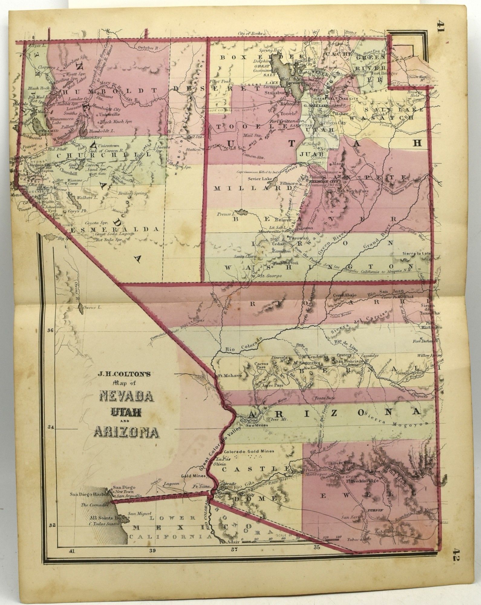 New York: J. H. Colton, 1865. Second Edition. Colored engraved map, with a bit of creasing at the fold. 11 3/4 x 9 1/2". From the second edition of Colton's Condensed Octavo Atlas of the Union.