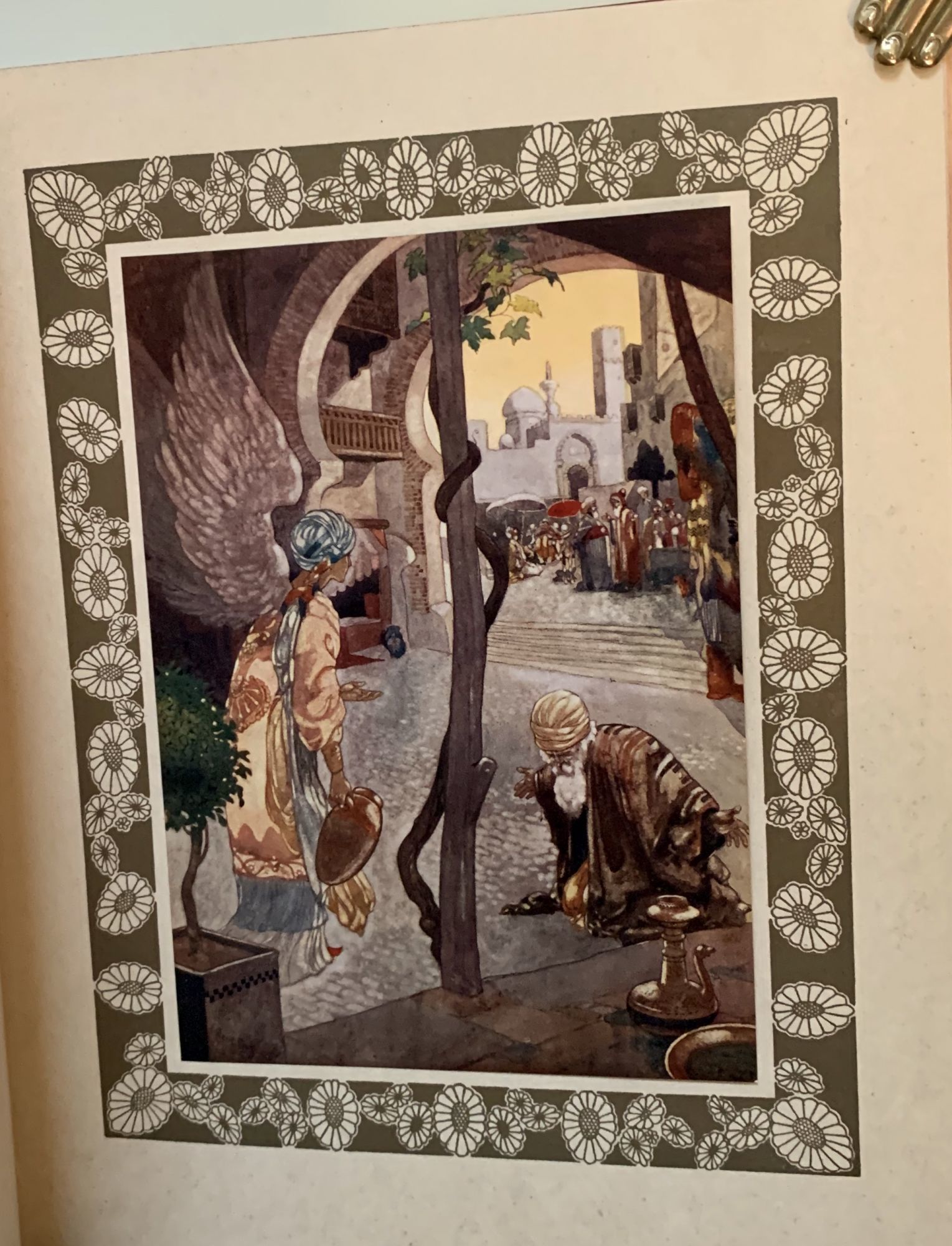 London: Hodder and Stoughton, 1913. leather_bound. Full red levant. Aeg. Fine in matching red slipcase. Rene Bull. 75 pages printed recto only. 27.5 x 22.5 cm. Hand bound by Joseph E. Zuffant Jr.,for The Monastery Hill Bindery with his label mounted to inside front free endpaper. Twenty four tipped in color plates with lettered tissue guards, illustrations after Rene Bull mounted within decorative borders with additional black and white illustrated in line. Raised bands, spine panels in gilt motifs, inner dentelles, decorative raised endpaper designs, double gilt border panel covers frame arabesque designs.