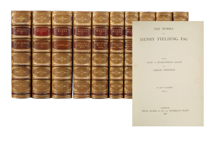 London: Smith, Elder & Co, 1882. Limited to 1000 sets, this being set number 164. Ten large octavo volumes (8 7/8 x 6 1/2 inches; 225 x 165 mm.). Contemporary full paneled speckled calf for Hopkins of Glasgow (stamped to verso of front free endpaper). Floral corner devices in gilt. Double ruled gilt borders. Five gilt ruled raised bands. Six compartments, two of which have morocco labels, the remaining four gilt ornamented and decorated. Dentelles. All edges gilt. Frontispieces. Black and white illustrated plates with tissue guards throughout. A Fine set.