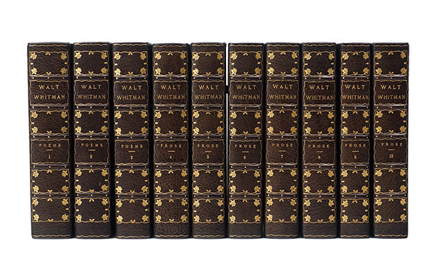 New York: G.P. Putnam's Sons, 1902. The Paumanok Edition. Limited to 300 numbered sets printed on Ruisdael hand-made paper (of which this is #92), signed by the publisher. Ten large octavo volumes (236 x 166 mm) occupying approximately 18 1/2 inches (47 cm.) of shelf space. Publisher’s three-quarter dark green morocco over marbled boards ruled in gilt. Spines lettered and decoratively tooled in gilt in compartments in a floral design, top edge gilt, others uncut, marbled endpapers. Etched and photogravure frontispieces and plates, with descriptive tissue guards. A Fine set.