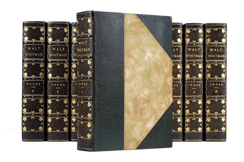 Journalist, essayist, and poet who revolutionized American literature with such poems as I Sing the Body Electric and Song of Myself, which asserted the beauty of the human body, physical health, and sexuality. "Always the champion of the common man, Whitman is both the poet and the prophet of democracy. The whole of Leaves of Grass is imbued with the spirit of brotherhood and a pride in the democracy of the young American nation. In a sense, it is America’s second Declaration of Independence: that of 1776 was political, this of 1855 intellectual” (Printing and the Mind of Man). Here, drawn together in a beautiful binding, are some of Whitman's most influential and important works.