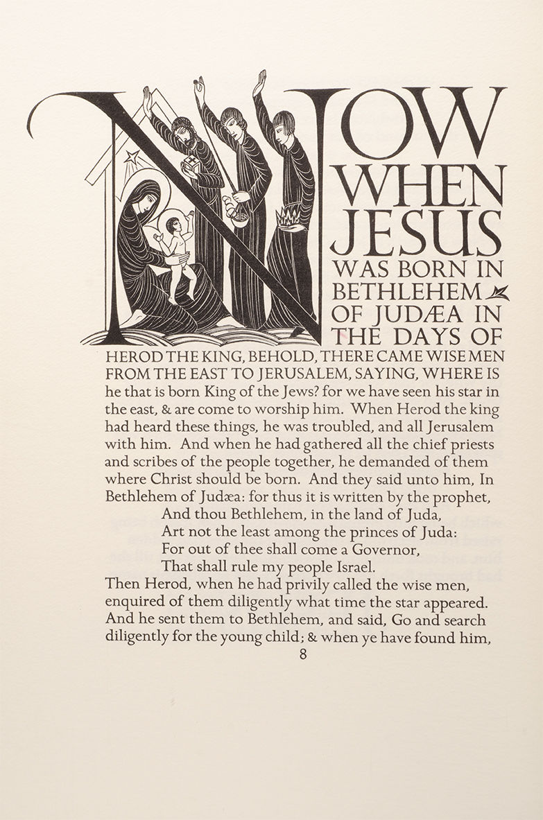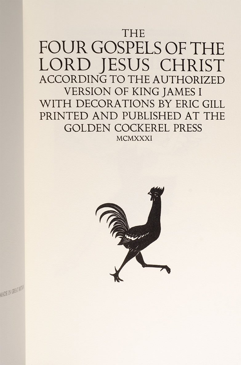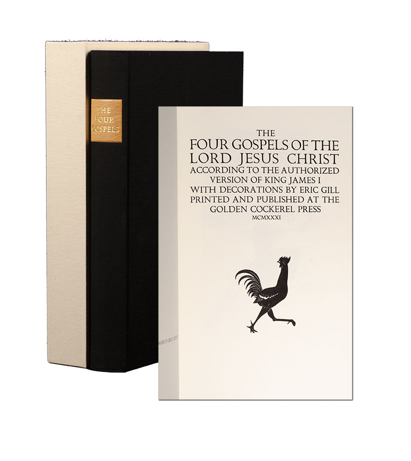 [Bible in English]. [Reproduction of the Golden Cockerel Press edition of] The Four Gospels of the Lord Jesus Christ. According to the authorized version of King James I. With decorations by Eric Gill
