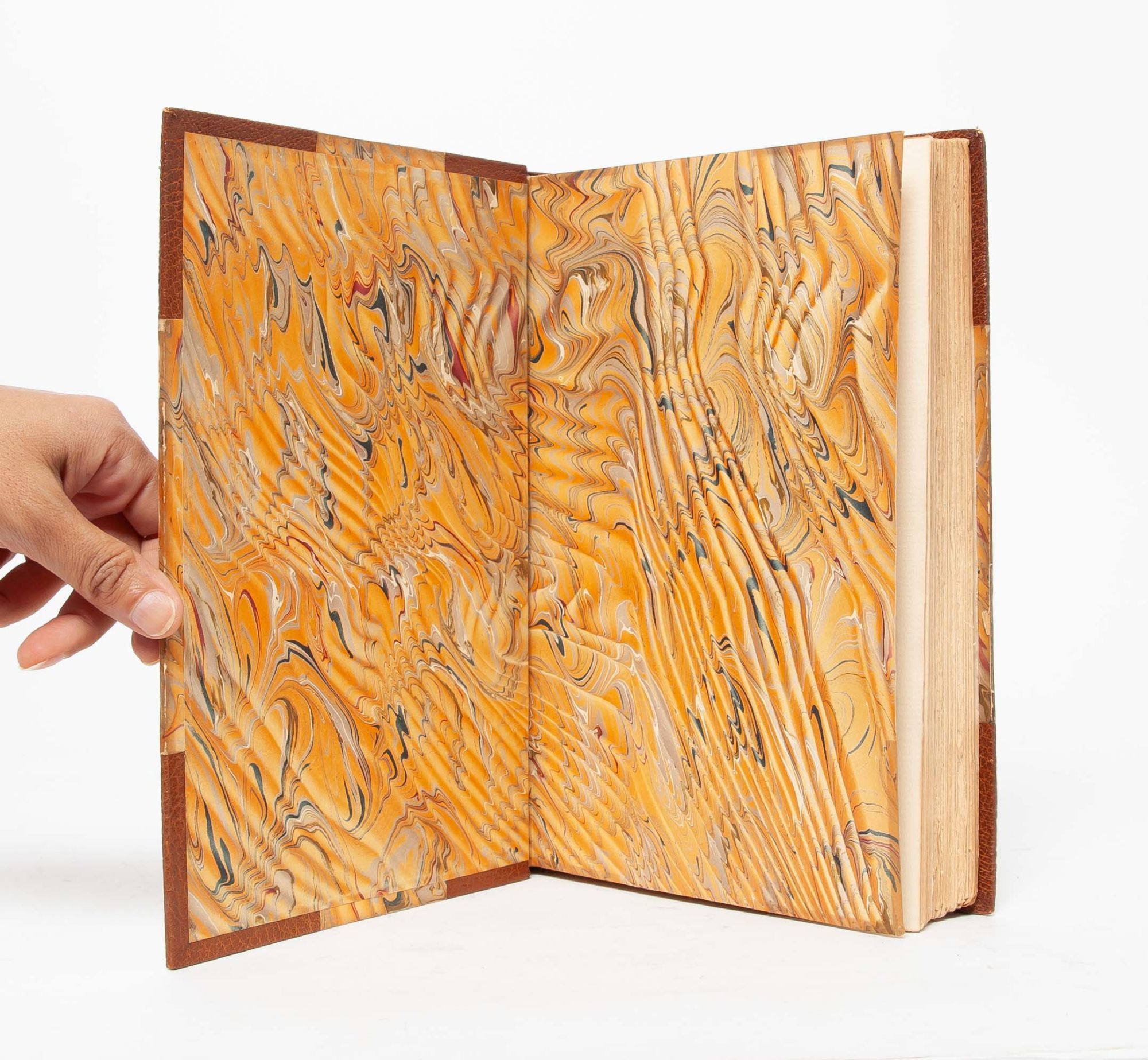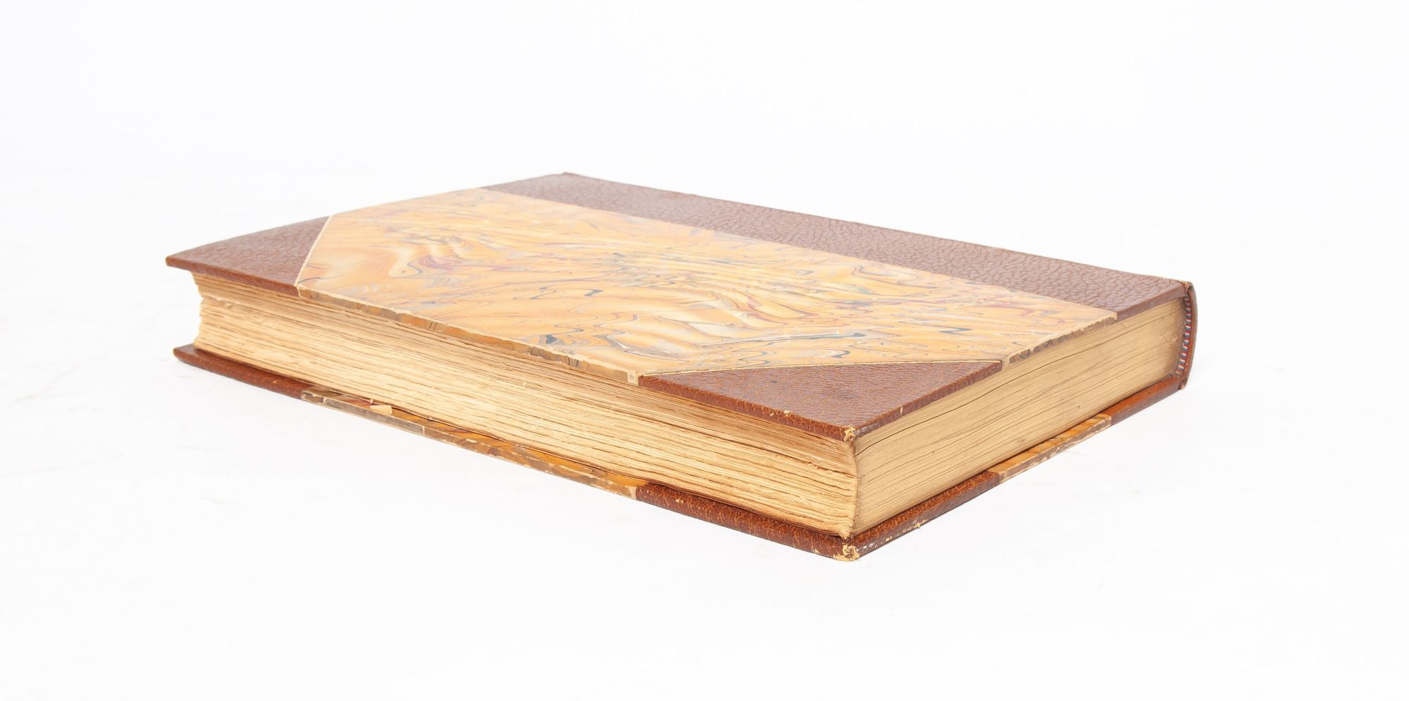 The book binder of the present set, "James Macdonald (1850-1920) was born in Scotland. In 1873 he came to the United States and worked with William Matthews, one of America's pre-eminent binders. He left Matthews when he had saved enough money to start his own binding business. The Macdonald bindery, established in 1880, soon became one of the most sought-after binderies in this country. In an interview with the New York Herald in November 1910, James Macdonald acknowledged that hand- binding in the industrial age was a dying art, '…the world is moving away from the art of the book lover. The world is swifter now, but it is not so thorough in many things as it once was. The average man has become used to the product of the machine. Today he knows no other standard. He has lost his touch for half-tones- for the cover of a book has its half-tones.' After the Club Bindery closed in 1909 "James Macdonald purchased the largest part of the tools" (Thompson). Unaffected by the changing developments of the book and binding industry, the Macdonald bindery produced some of the finest bindings of its time both for themselves and for publishers and bookstores such as: Brentano's, Scribners, E. . Dutton and Co., Gotham Book Mart and others" (Christie's).