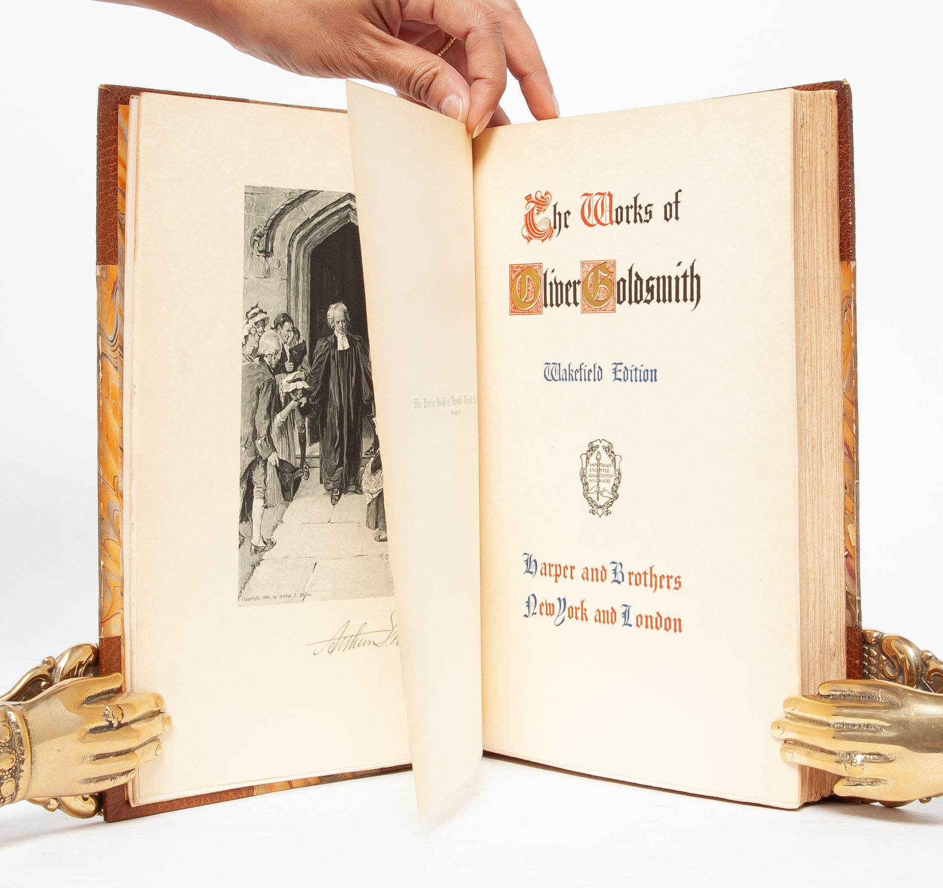 New York: Harper & Brothers, 1900. First Thus. The Wakefield Edition, limited to 500 numbered sets, this being copy 468, with frontispieces to volumes I-VIII signed by the artists. Twelve large octavo volumes (9 13/16 x 6 3/8 inches; 248 x 163 mm.) occupying approximately 16 1/2 inches (42 cm.) of shelf space. Bound by MacDonald (stamp-signed) in contemporary three-quarter brown crushed levant morocco over marbled boards. Five raised bands with gilt dots. Compartments with gilt decoration and red morocco inlays. Top edges gilt. Ninety-six full-page plates on Japanese vellum, including frontispieces, with captioned tissue guards, a total of ninety-six illustrations by Arthur I. Keller, Albert Sterner, Alfred Fredericks, F. Luis Mora, W.P. Snyder, Charles Brughton, and others. Extra-illuminated title pages. A Fine set.