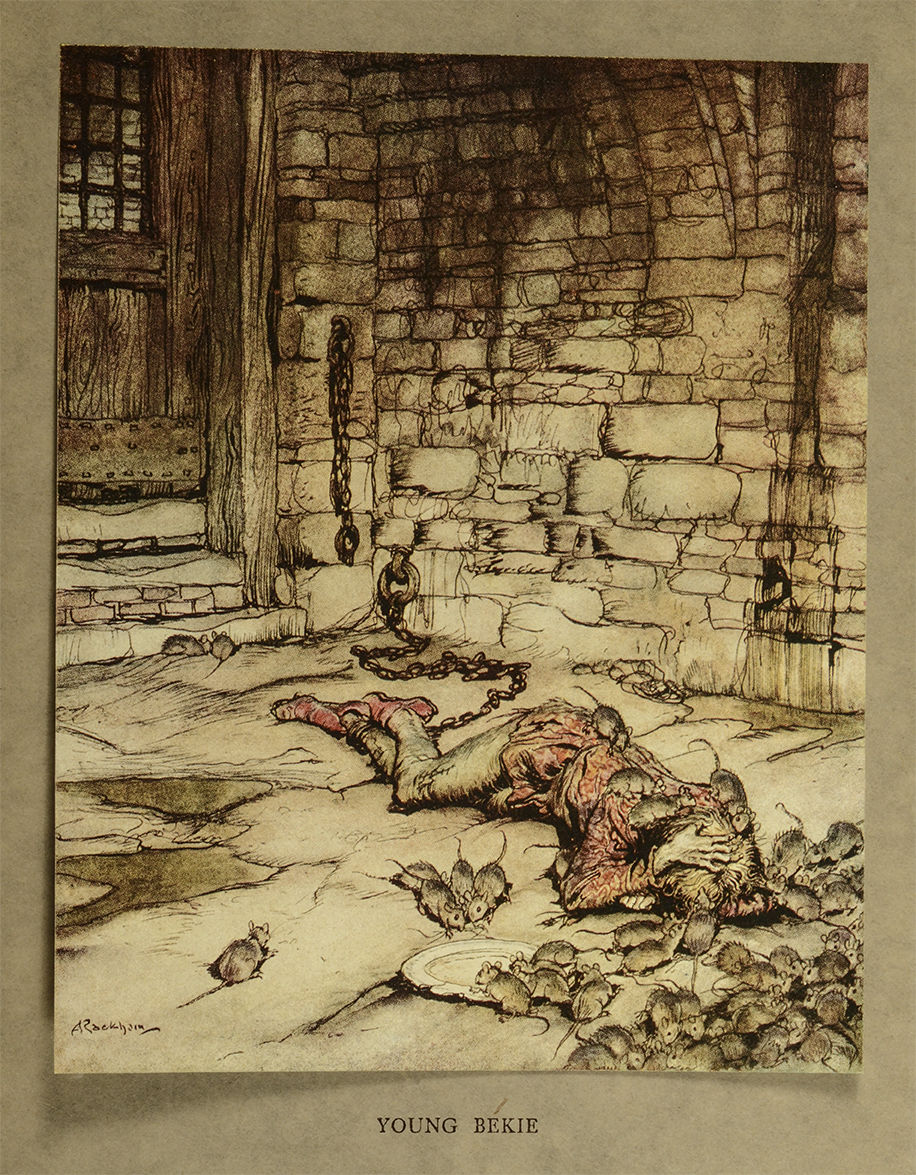 Arthur Rackham (1867-1939) is perhaps the most acclaimed and influential illustrators of the Golden Age of Illustration. A prolific artist even from his youth, Rackham got his start as an illustrator working for the Westminster Budget Newspaper (1892). Over the next few years, he took on more and more commissions for children’s books, hitting his career high in the first three decades of the twentieth century. Rackham turned his imaginative pen to every classic—from Shakespeare to Dickens to Poe.