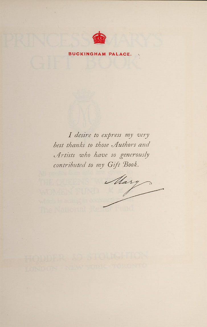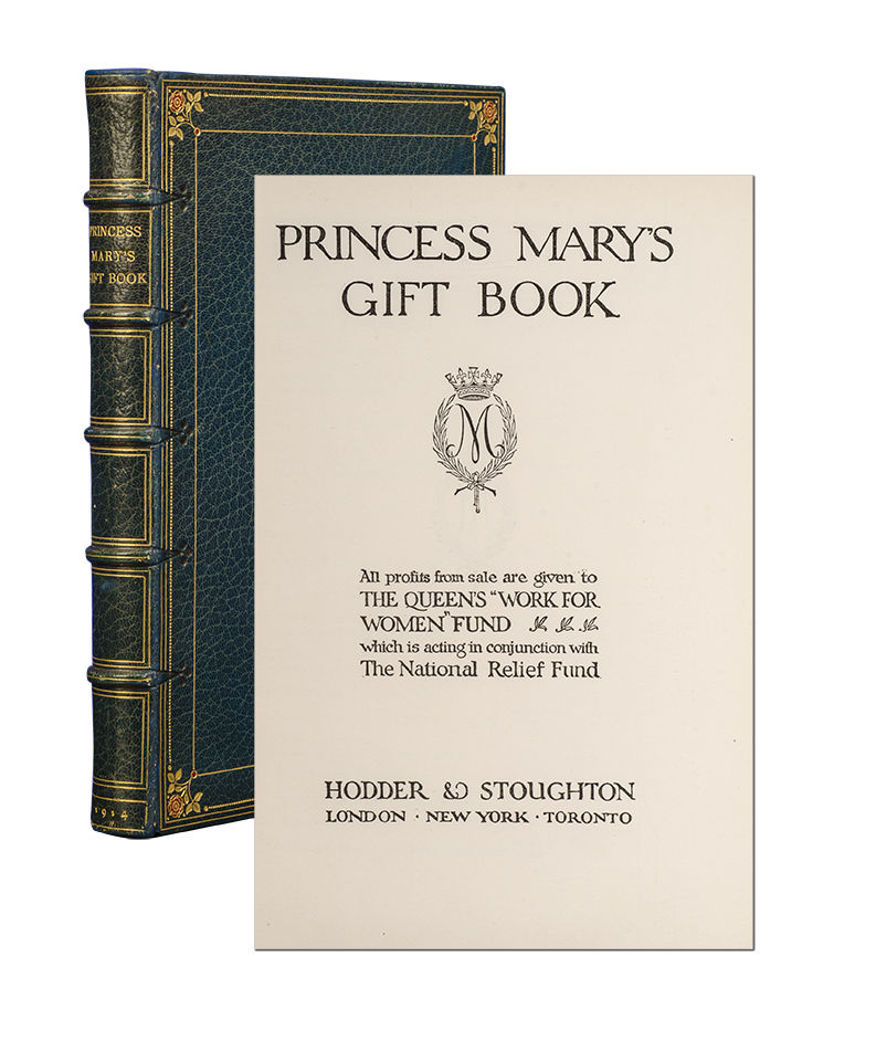 London: Hodder and Stoughton, 1914. First edition. Finely bound ca. 1914 by Sangorski & Sutcliffe (stamp-signed on rear turn-in) in full dark blue morocco, covers decoratively paneled in gilt with inlaid red morocco floral corner-pieces and in the center in gilt, the Royal stamp of Princess Mary. Spine with five raised bands, paneled and lettered in gilt in compartments, all edges gilt, cream watered silk liners and endleaves.Quarto (9 7/8 x 7 5/16 inches; 251 x 186 mm). vi, 140 pp. Fourteen color plates tipped-in to captioned tan stock with brown line frame, many black and white text drawings. Four figure ink number (upside down) on verso of rear blank leaf. An exceptional copy.