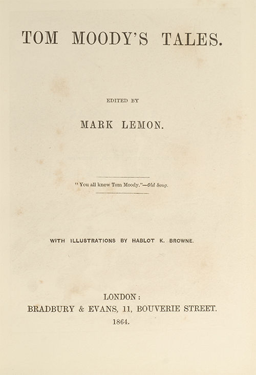 Featuring fourteen short stories in the sporting fiction genre written in their entirety (rather than merely edited) by journalist, novelist, playwright and actor Mark Lemon (1809-1870). Lemon was co-founder and for 30 years editor of Punch; Tom Moody was a pseudonym first adopted by Lemon in 1834 for a series of pieces that appeared in the New Sporting Magazine. As an actor he appeared in his friend Charles Dickens's private theatricals at Tavistock House. He was a friend of illustrator George Cruikshank, Wm. Makepeace Thackeray, and many other lights of his day. In short, he stood near the center of London's intellectual circle.