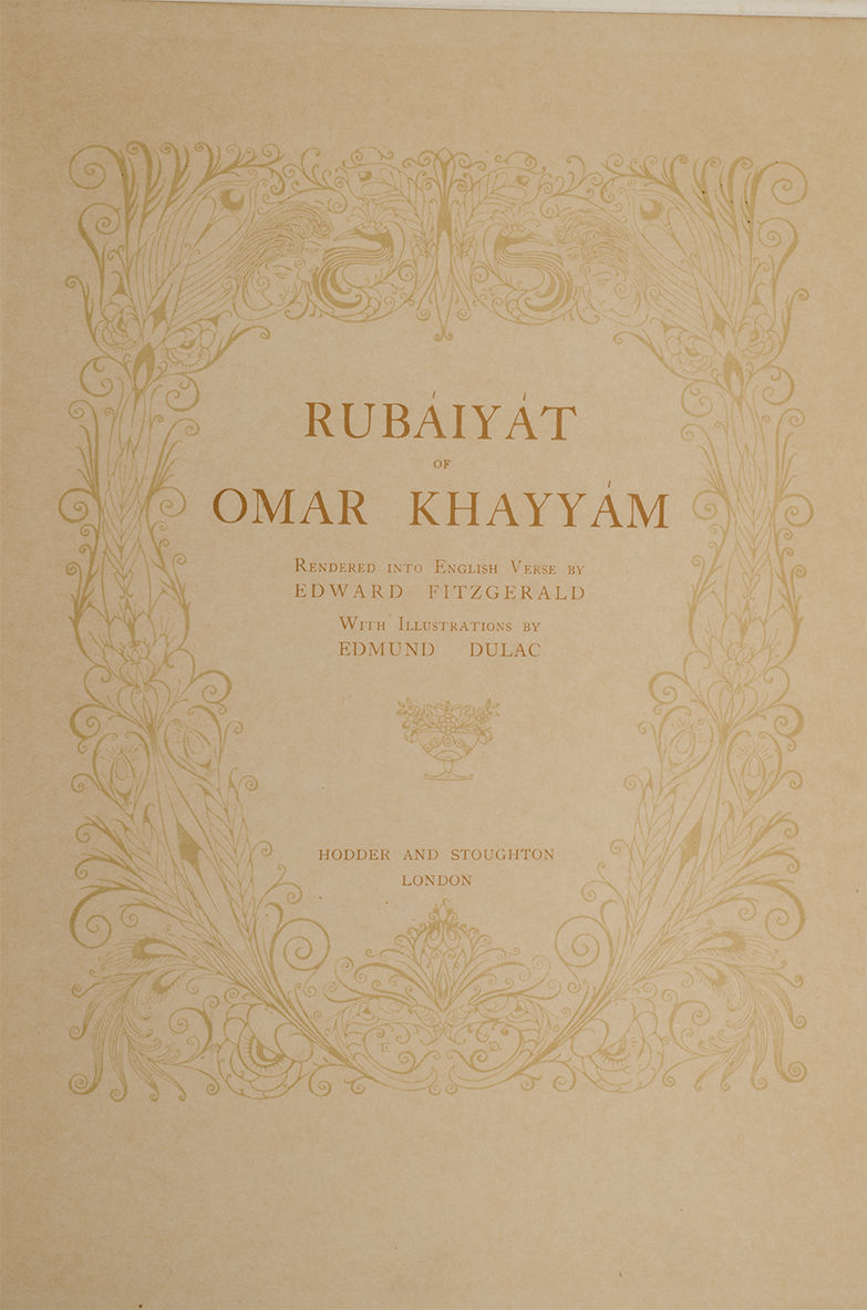 "In point of excellence of art, popularity, distinction and profit the crowning achievement... was the publication of the Fitzgerald version of the Rubáiyát of Omar Khayyám illustrated by Edmund Dulac. The book was a joy and a treasure. Its public acceptance was immediate and great."