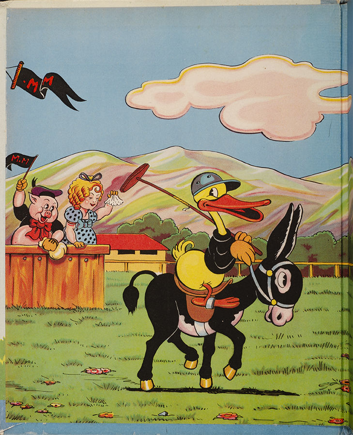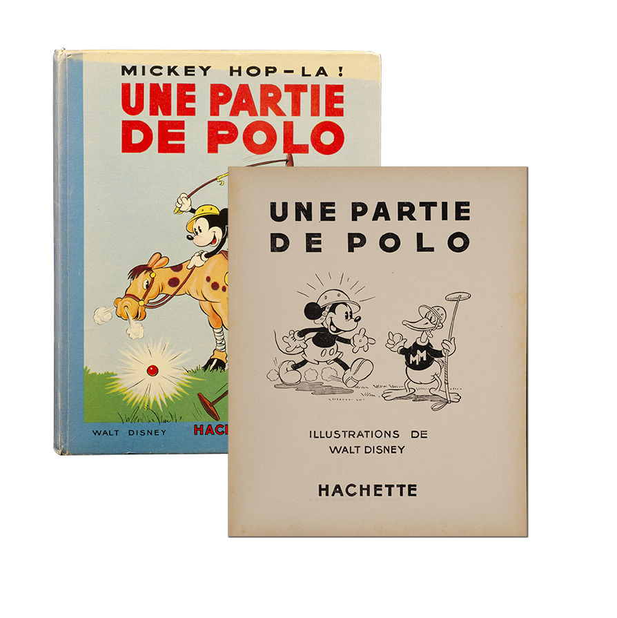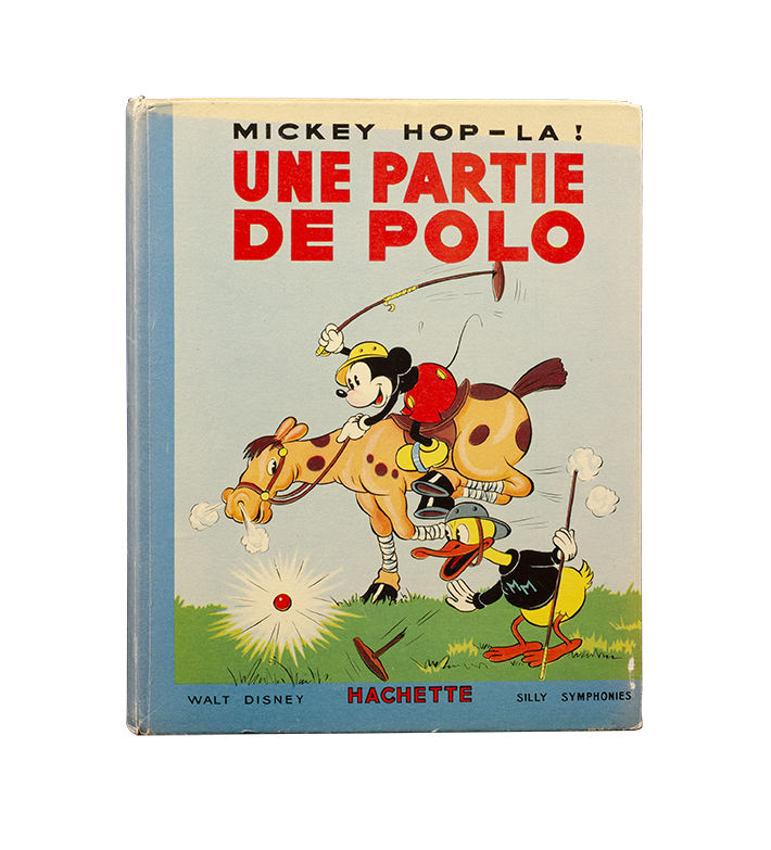 Mickey, Donald and Goofy play in a polo match against several Hollywood stars including Laurel and Hardy, Charlie Chaplin, and Harpo Marx. Clark Gable and Mae West are spectators. This highly amusing little book features three vibrantly colored pop-ups plus color pictorial endpapers and many line illustrations throughout the text. This title was never published in America.