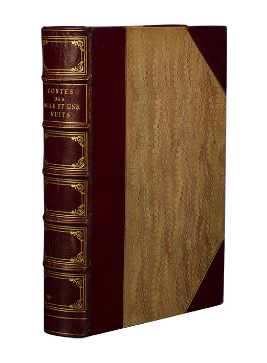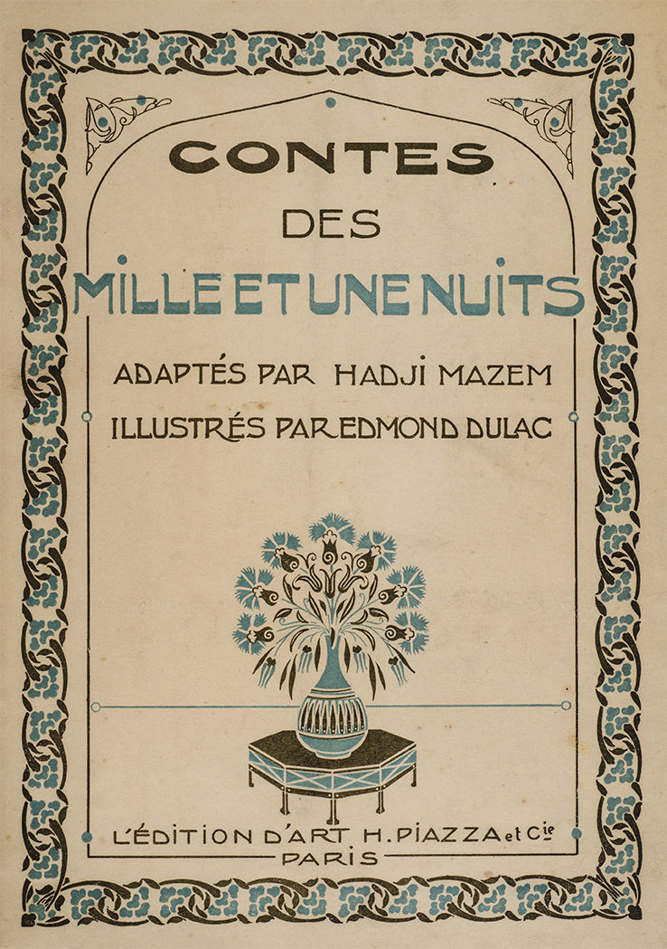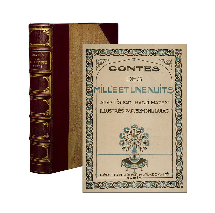 Originally published as Stories From the Arabian Nights (1907). Here translated into French from the original Arabic by Hadji-Mazem. The Leicester Galleries commissioned from Dulac the fifty water colours, retaining the copyrights, and, with Hodder and Stoughton, brought out the book. It was an overnight sensation that unequivocally established Dulac's reputation.