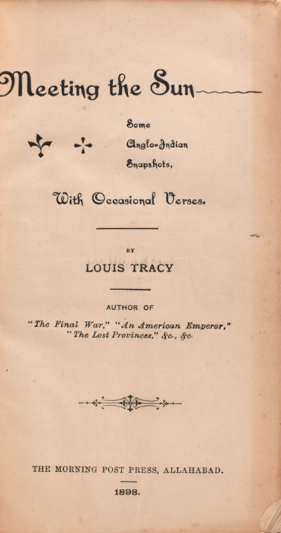 Allahabad: Printed and Published at the Morning Post, 1898. First edition. [vii], 188pp. 8vo. Paper over boards printed , with crimson cloth spine. Very Good. Bookplate of J.B. Huish, Tavistock, Devon. First edition. [vii], 188pp. 8vo. Tracy, Preface: "Perhaps in the succeeding pages you may discover the attraction this God-forsaken country has for all of us." Rare; no copies listed in WorldCat