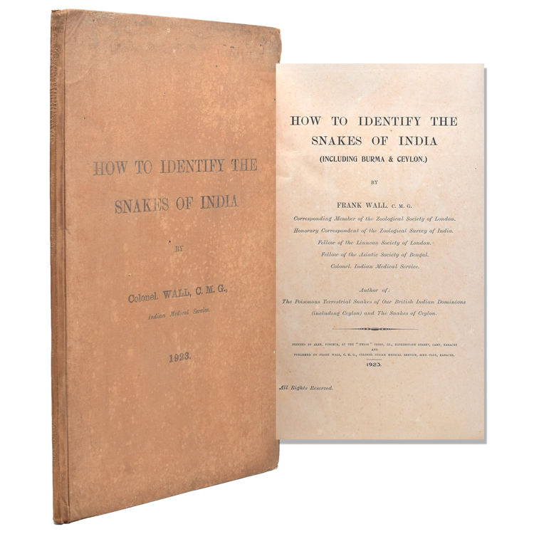 Karachi: Alex. Fonseca at the "Union" Press, Ld., Elphinstone Street, Camp, Published by Frank Wall...Sind Club, 1923. First edition, with errata slip. [4], 56pp. Folio (13-3/8 x 8-1/4 inches;. Brown publisher's cloth. Very Good, some spotting to binding. First edition, with errata slip. [4], 56pp. Folio (13-3/8 x 8-1/4 inches;. Rare; only four copies listed in WorldCat