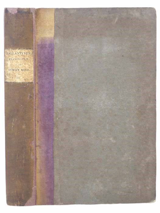 Edinburgh: William Blackwood, 1828. First Edition. Hard Cover. Very Good/No Jacket. 0x0x0. Rebound with cloth spine over paper-covered boards, (original?) spine label laid down, new end sheets. 1828 Hard Cover. vi, 502 pp. 8vo. The first part, all published, of three that were envisioned, of a significant work of mental philosophy by "perhaps the only Scot of his day who had a sufficient grasp of Hume's arguments to realize that Paley's rebuttals had loopholes…." — Cambridge Companion to the Scottish Enlightenment. A Secessionist preacher, Ballantyne had studied with John Finlayson and Dugald Stewart at Edinburgh. The Examination, "his principal work … is in effect a critique of the Scottish philosophy from Hume to Thomas Brown." — Dictionary of 19th Century British Philosophers (Thoemmes 2002). Brown, as the thinker in many ways closest to Hume, comes in for particular attack for a philosophy that in Ballantyne's view failed to save religion [from Hume's arguments]. Ballantyne nevertheless saw Hume's science of human nature as setting the pattern that they must follow. He reduced the "principles of human nature" to four, which are the subjects of the four chapters of the book: sensitive, associating, voluntary, and motive. (ibid.). The Dictionary entry notes further that Ballantyne anticipated to some extent William's Hamilton's critique of Brown, and that the Examination had an influence on a number of 19th century British philosophers (James Douglas, George Gleig, J.D. Morrell, Cairns, et al.). McCosh says the work “is distinguished for its independence, and its rising above the philosophy of [Ballantyne's] time. — Scottish Philosophy