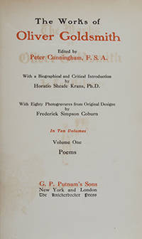 "The Turk's Head - A London tavern, was a favorite haunt and a kind of social headquarters of the men of letters in Goldsmith's day. It was at this place of entertainment, too, that the Literary Club, the most famous organisation of its kind in the history of English letters, held its meetings… The illustrations are from designs by Mr. Frederick Simpson Coburn, who has so well earned the enviable reputation as an illustrator which is now his" (Publisher's note).