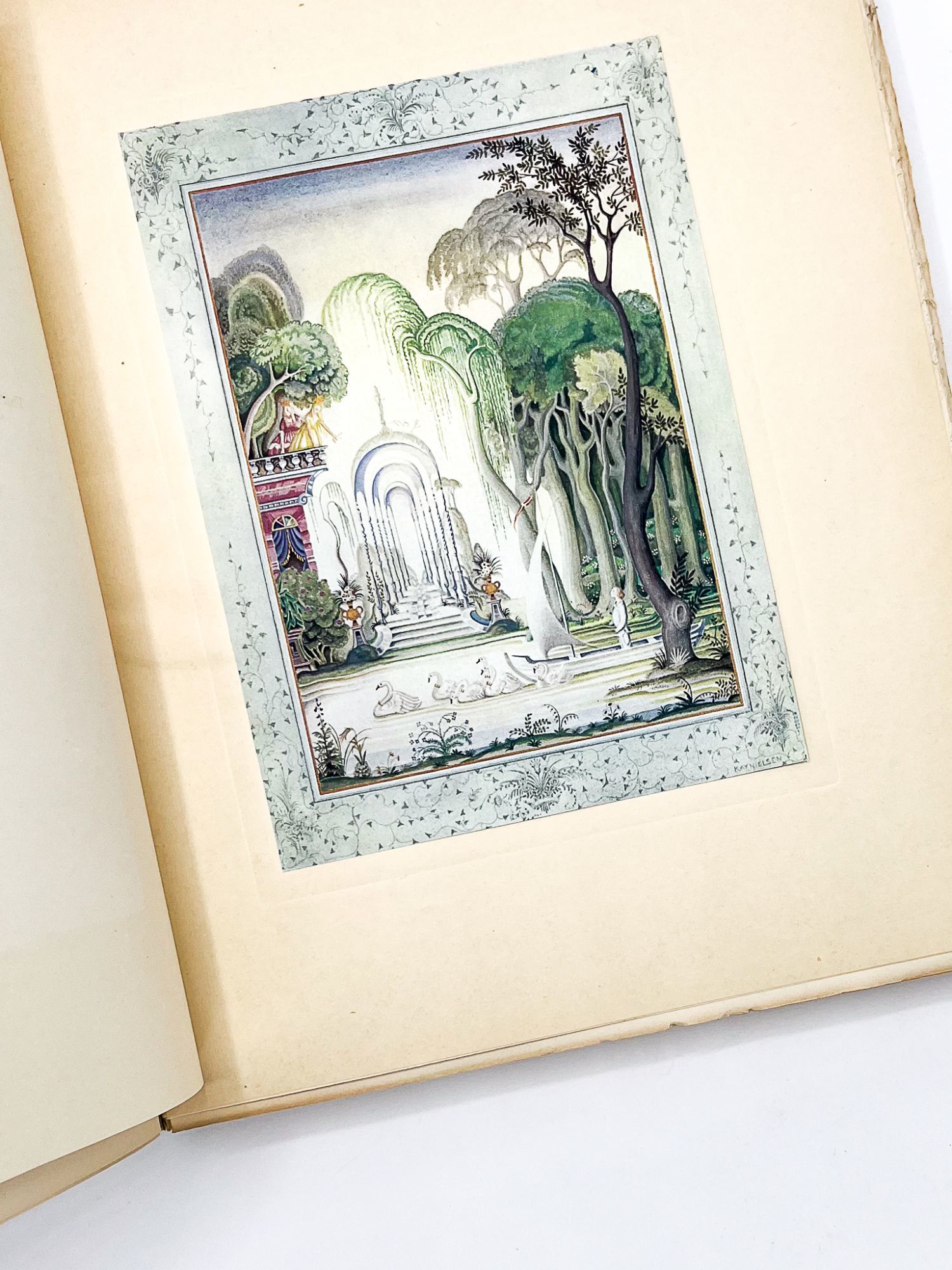 London: Hodder & Stoughton, 1924. Near fine.. Signed limited edition, one of only 500 numbered copies signed by one of the greatest Golden-Age illustrators, Kay Nielsen. Nielsen illustrates the work of fellow Dane, Andersen, in this gorgeous deluxe gift book with a style mixing "some of the decorative design of Art Nouveau with the bold shapes of Art Deco" (Menges). Includes "The Snow Queen," "The Nightingale," and more. A stunning production. 12'' x 10''. Original full vellum, gilt-stamped boards and spine. Top edge gilt, other edges uncut. 12 tipped-in color plates and many full-page black-and-white plates throughout. 197, [1] pages. Housed in custom window-framed slipcase. Ink gift inscription on second fly leaf. Faint toning along edges of vellum, gilt slightly effaced on spine.