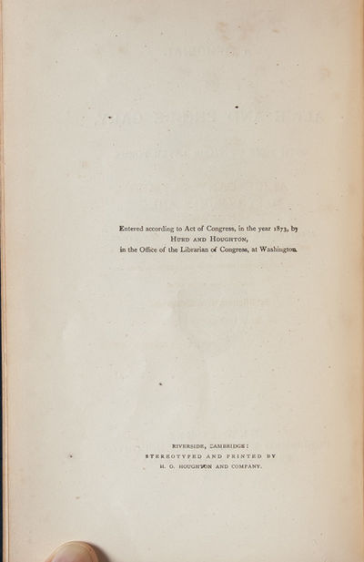 New York: Hurd & Houghton, 1873. First edition. Near Fine. Original publisher's cloth binding embossed in gilt, black, and blind (BAL terra cotta P. cloth). Blue coated endpapers. Complete with frontis and inserted plate. A bit of shelfwear to corners. Bookplate of Bacon to front pastedown; small binder's ticket of Riverside Press to rear pastedown. Light scattered foxing to endpapers, else an internally clean and unmarked. A just about Fine copy of this activist biography. Setting aside digital copies, it is surprisingly scarce institutionally, with OCLC reporting only 6 hardcopies of the first edition.