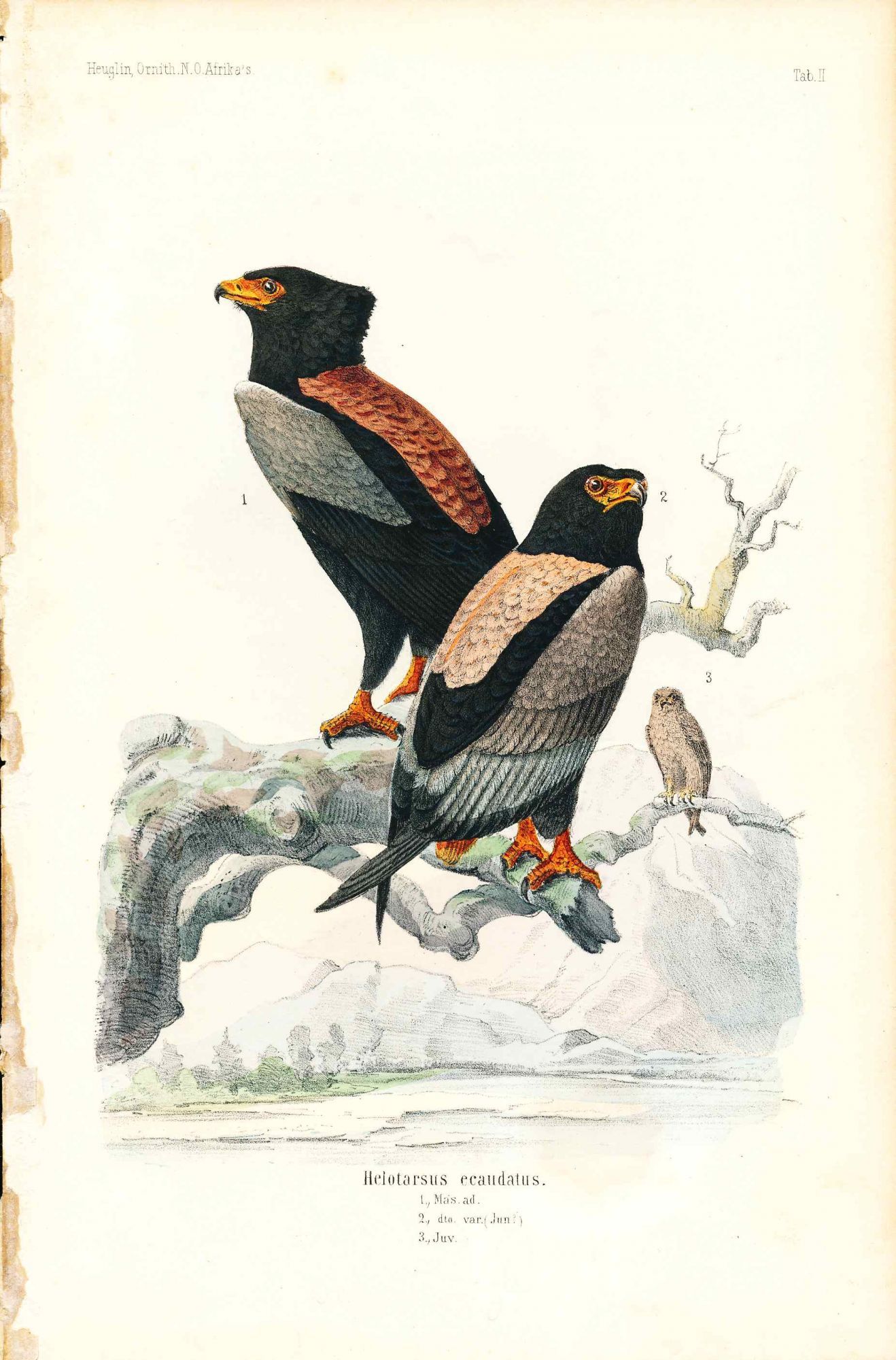 Bird print - Helotarsus ecaudatus (Plate II ONLY) from Ornithologie Nordost-Afrika's