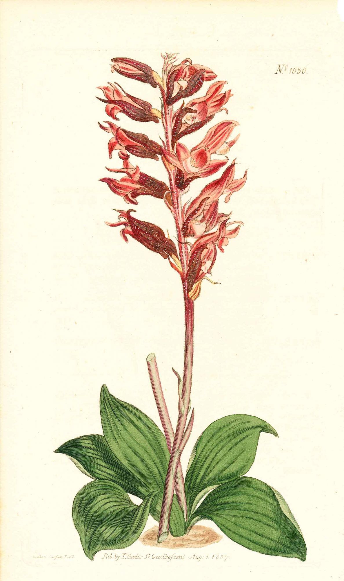 Plate No. 1036 - Neottia Orchioides. Frosted-Flowered Neottia - from Curtis's Botanical Magazine, Volume XXVI (botanical print)