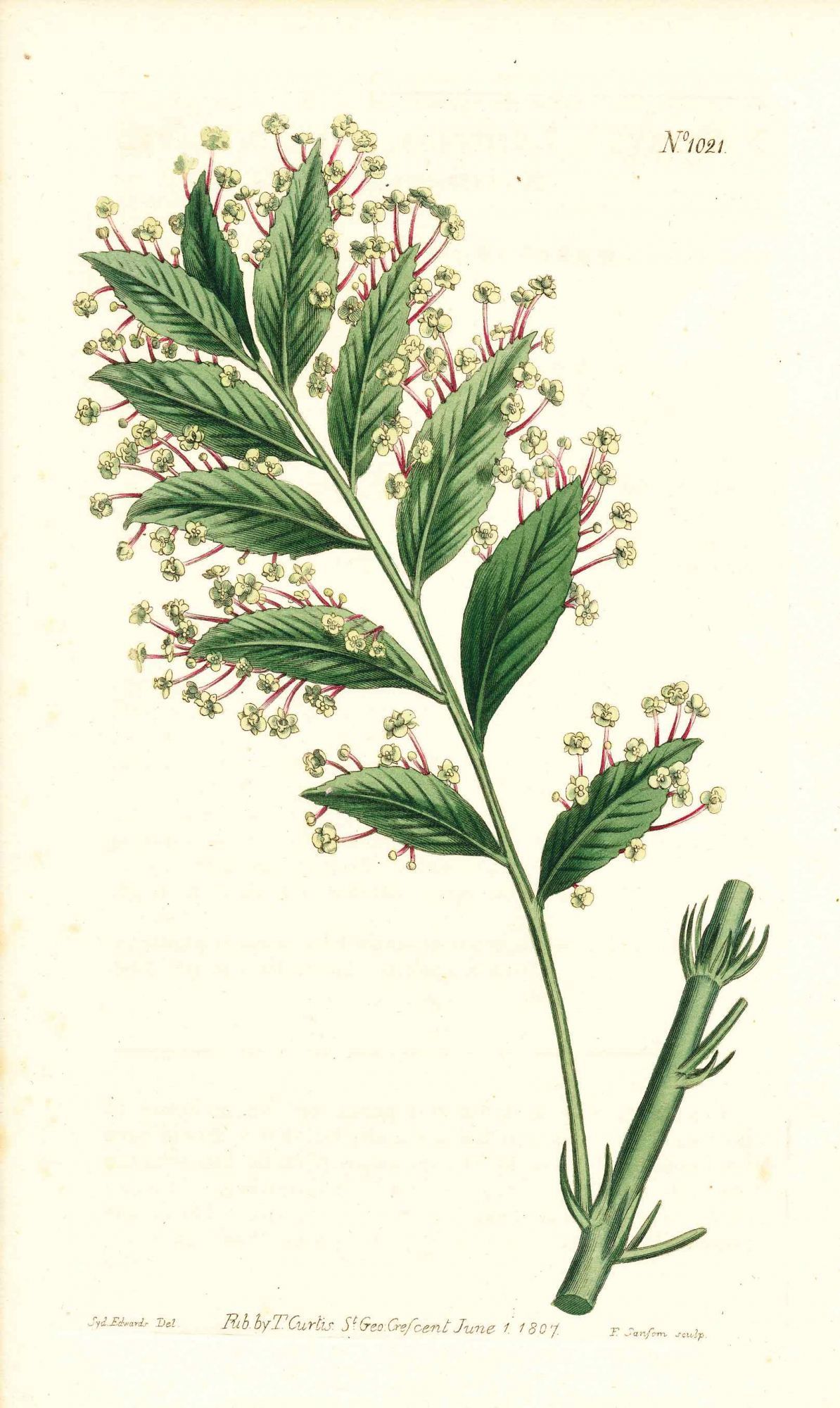 Plate No. 1021 - Xylophylla Latifolia. Broad-Leaved Xylophylla - from Curtis's Botanical Magazine, Volume XXVI (botanical print)