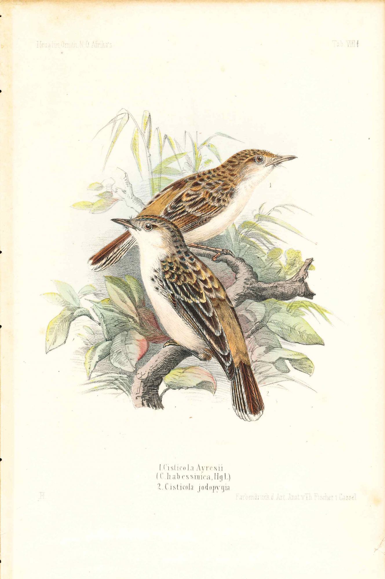 Bird print - Cisticola Ayresii, (C. habessinica), C. jodopygia (Plate VIII ONLY) from Ornithologie Nordost-Afrika's