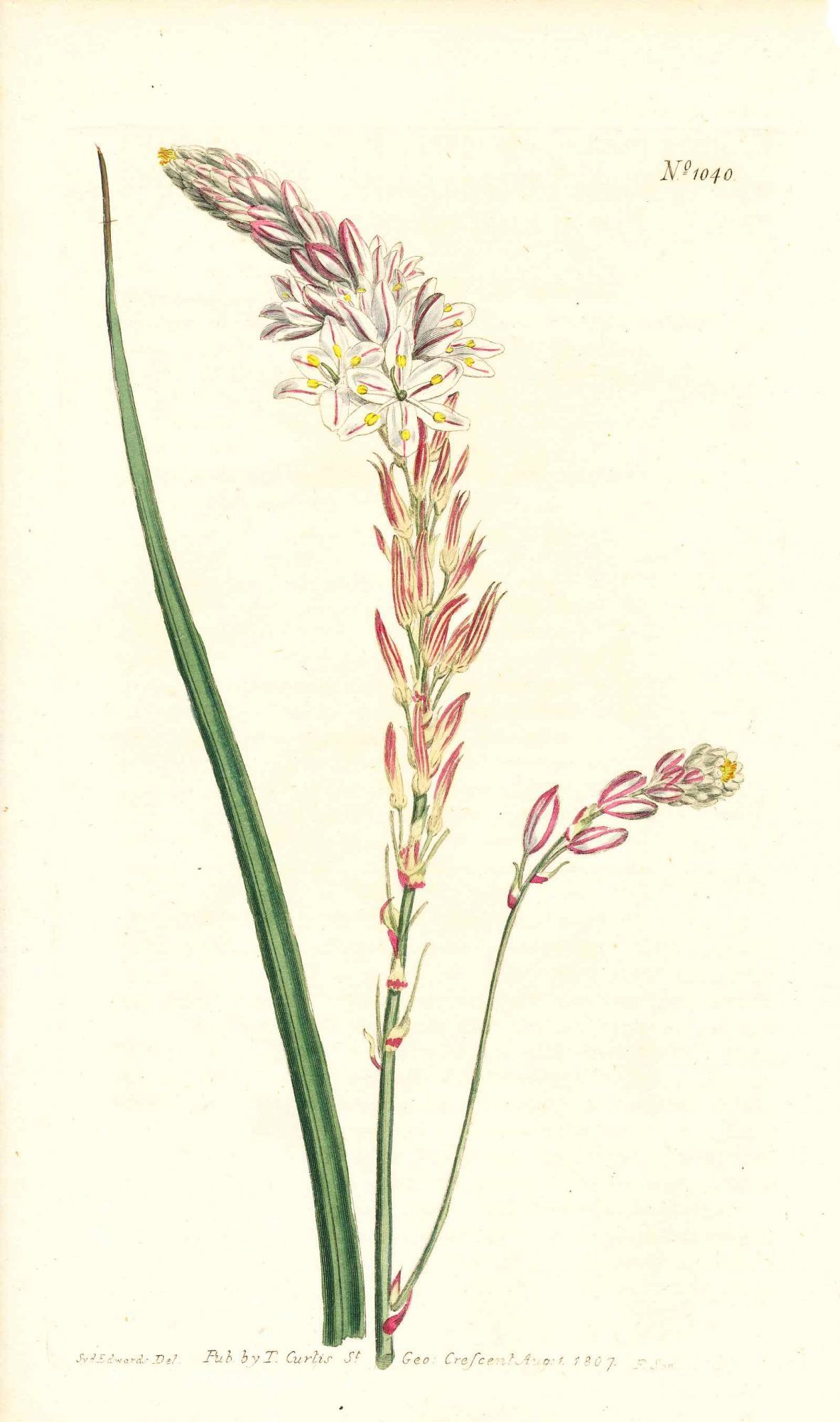 Plate No. 1040 - Anthericum Vespertinum. Afternoon - Flowering Anthericum - from Curtis's Botanical Magazine, Volume XXVI (botanical print)