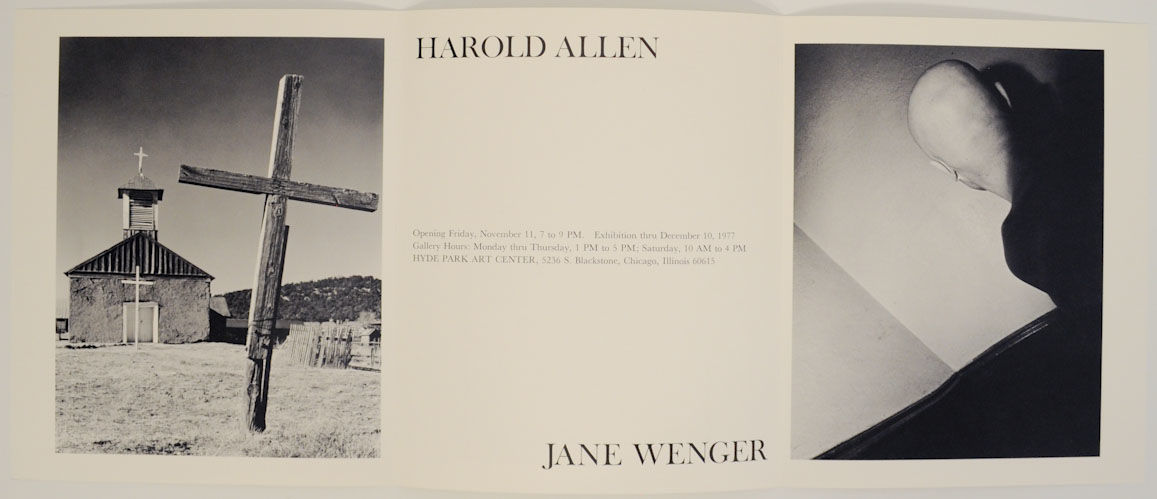 Chicago, IL: Hyde Park Art Center, 1977. Exhibition brochure for a show that ran November 11 through December 10, 1977. Single sheet folded twice. Includes a black and white image by Harold Allen and another by Jane Wenger. A fine copy. Uncommon ephemera.
