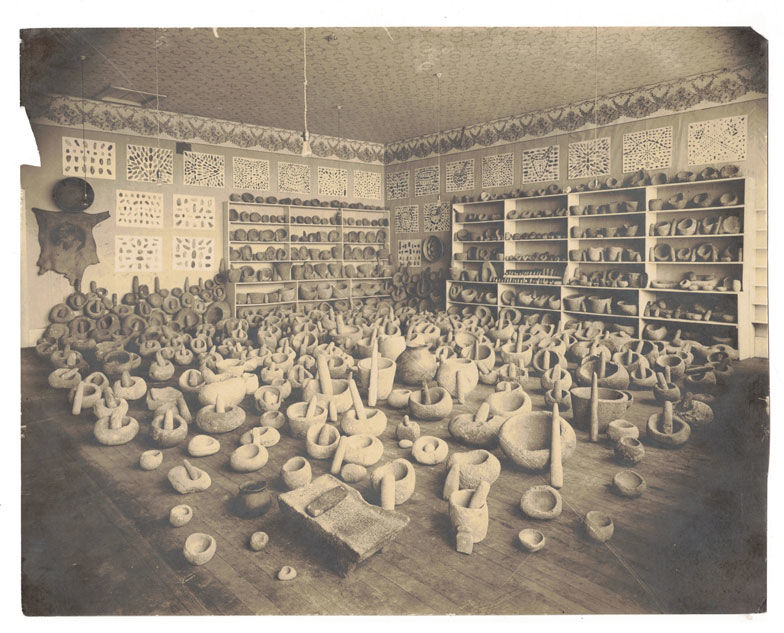 One photograph [7 1/2" x 9 1/4"] depicting a room overflowing with mortars and pestles. Photographer unknown. Location also unknown. 3/4" x 1/4" chip to left fore-edge; small chips to right fore-edge corners. Jackson was the first to photograph the prehistoric Native American dwellings of Mesa Verde. His photographs of the American West popularized the region, and were pivotal to familiarizing people with the unknown west.
