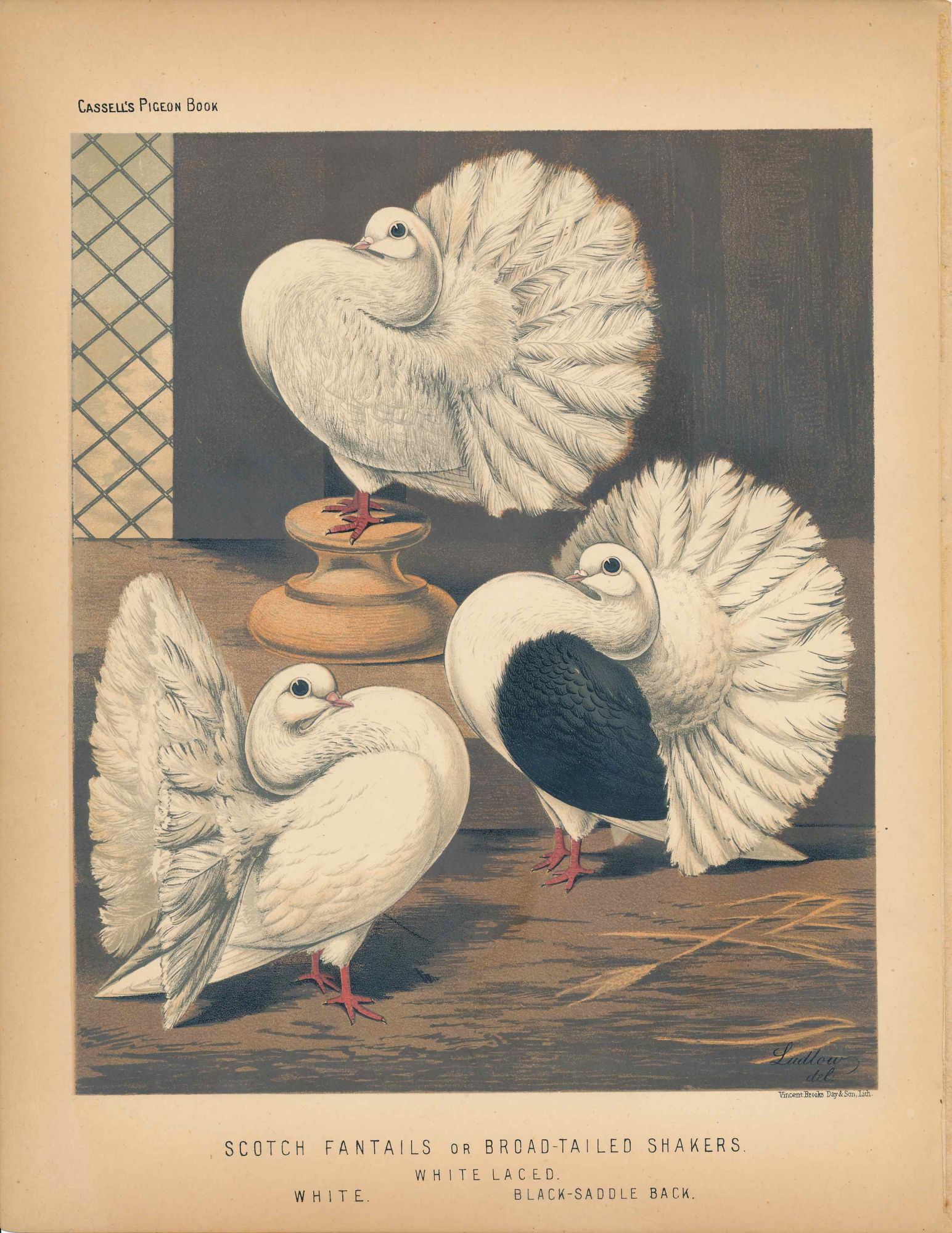 Cassell's Pigeon Book - "Scotch Fantails or Broad-tailed Shakers. White Laced, White, Black-Saddle Back" Pigeons