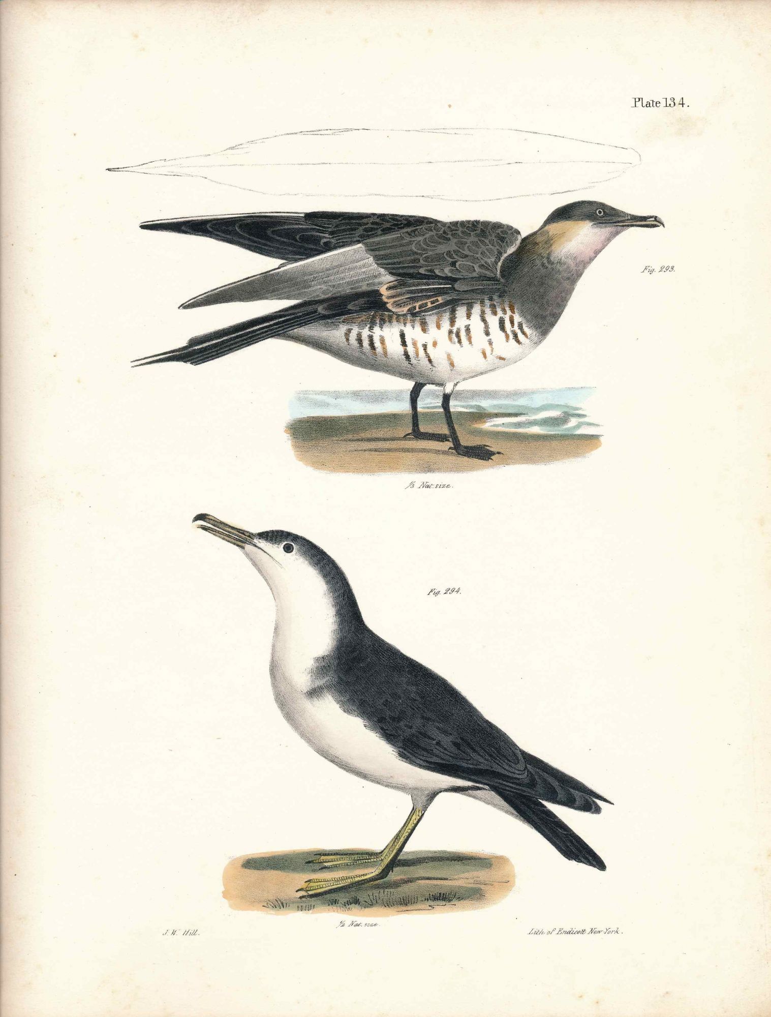 Albany: Carroll and Cook, 1844. Very Good. Hand colored lithograph of two birds, both seagulls. Minor browning to edges. Light foxing. Size: 11 x 8.5 inches. Print/081220.