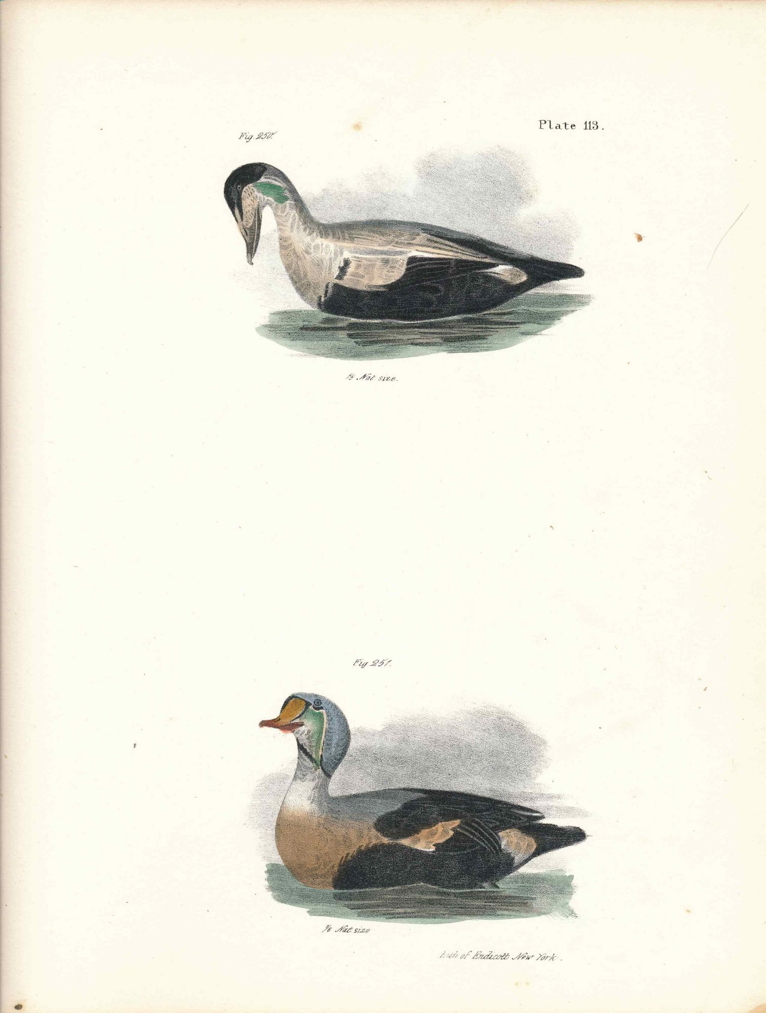 Albany: Carroll and Cook, 1844. Very Good. Hand colored lithograph of two birds - ducks. Minor browning to edges. Minor chipping to edges. Size: 11 x 8.5 inches. Print/081220.