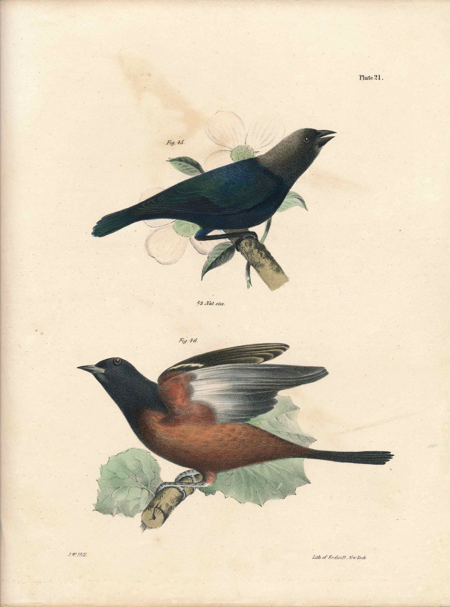 Albany: Carroll and Cook, 1844. Very Good. Hand colored lithograph of two birds. Minor browning to edges. Light foxing. Size: 11 x 8.5 inches. Print/081220.