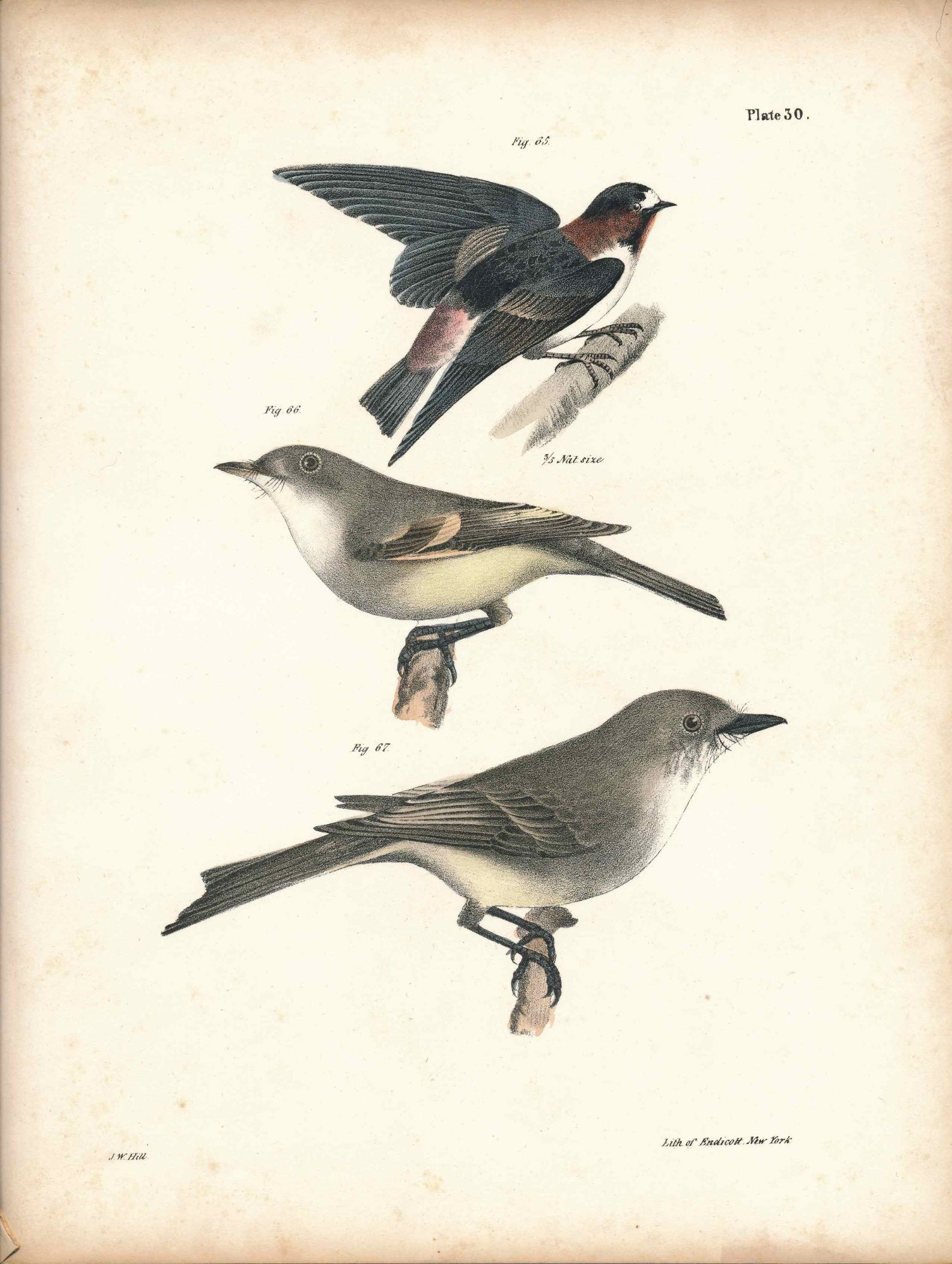 Albany: Carroll and Cook, 1844. Very Good. Hand colored lithograph of three birds. Minor browning to edges. Light foxing. Size: 11 x 8.5 inches. Print/081220.