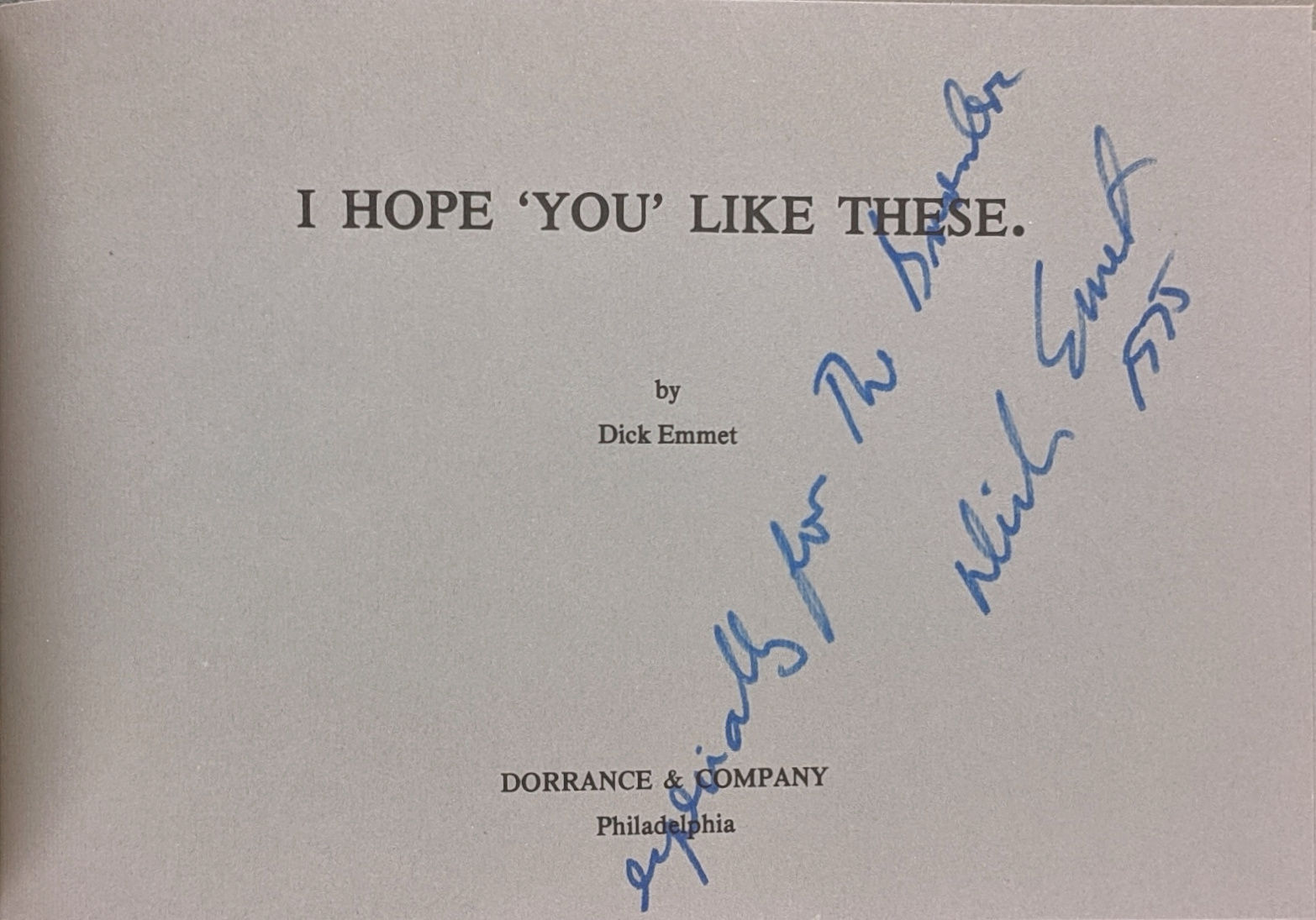 Emmet was a lawyer moonlighting as a love poet. Vanity press offering with occasionally racy illustrations.
