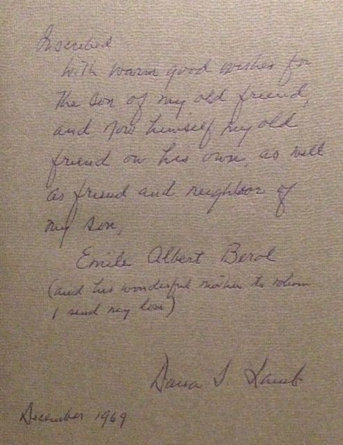 Barre, Massachusetts: Barre Publishers, 1969. 1st. Cloth. Collectible; Fine. A very nice copy of the 1969 1st edition, limited to 1500 numbered copies. WARMLY INSCRIBED IN YEAR-OF-PUBLICATION BY DANA LAMB along the entire front free endpaper. VG+, bright and clean, in a VG+ publisher's slipcase. A light, subtle trace of foxing along the spine, otherwise immaculate. Octavo, 100 pgs. Signed by Author.