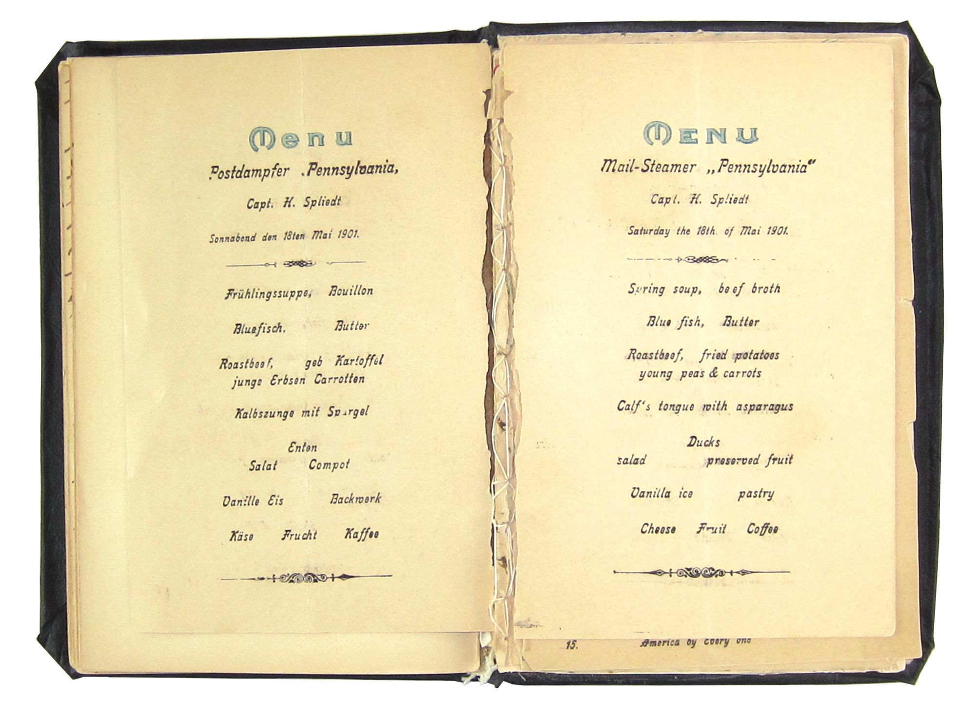 --Menu 23 Mai 1901 mitt Concert-Programm der Kapelle des Postdampfers "Pennsylviana"