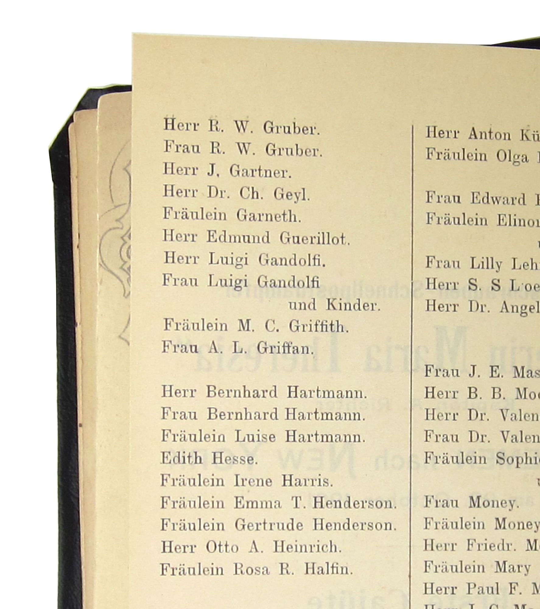 --Passenger List 22 October 1901 [author listed as Fräulein Luise Hartmann with her parents].
