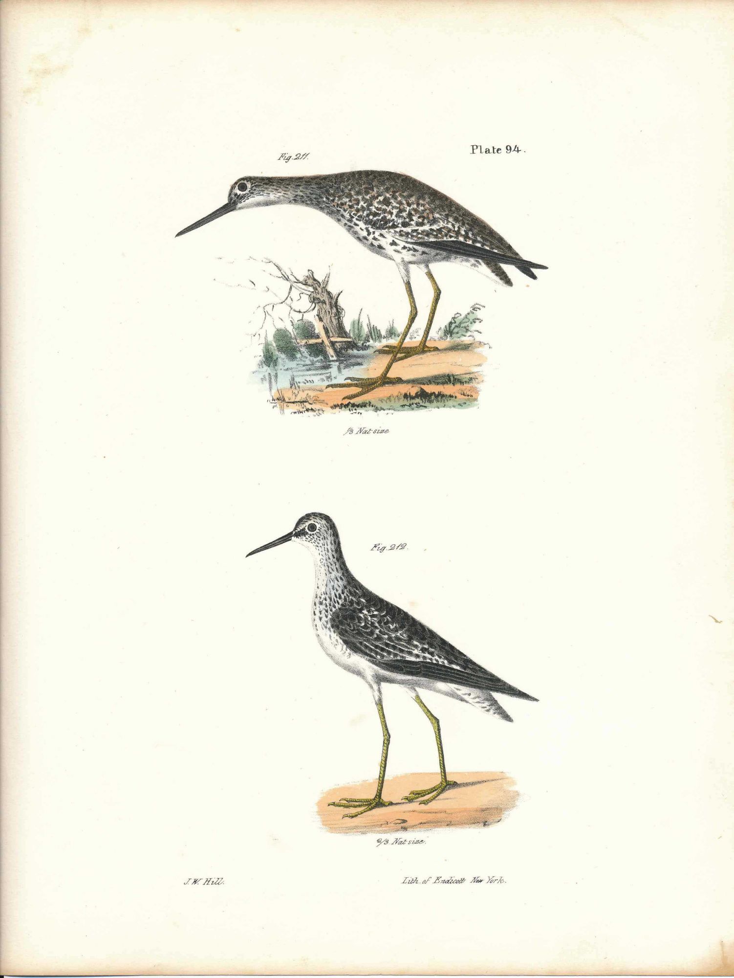 Albany: Carroll and Cook, 1844. Very Good. Hand colored lithograph of two birds - shore birds, possibly sand pipers. Minor browning to edges. Light foxing. Size: 11.25 x 9 inches. Print/082020.