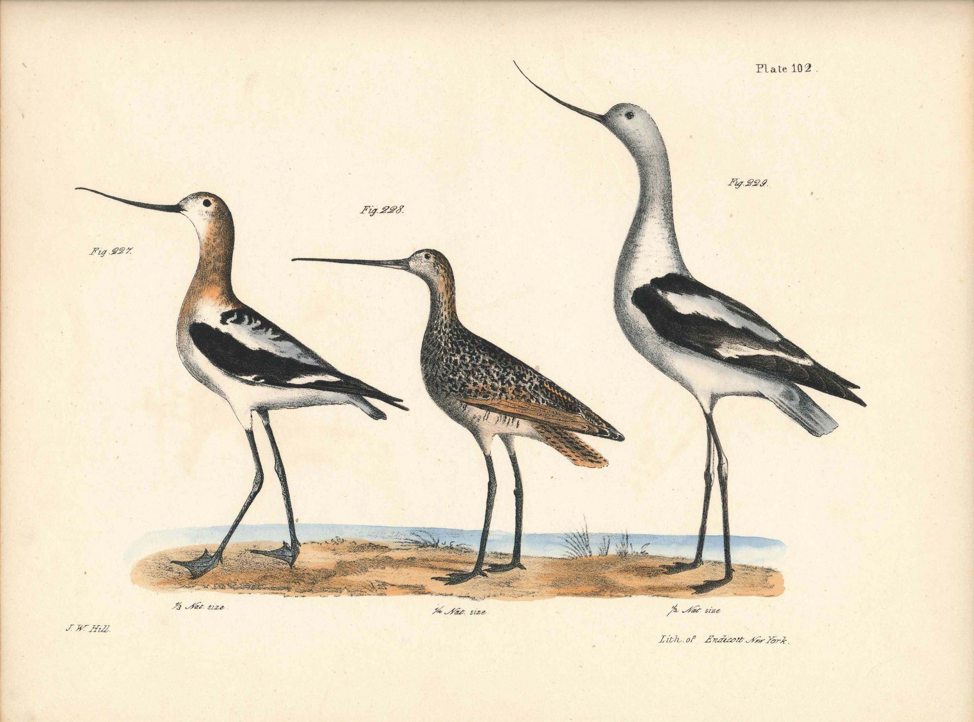 Albany: Carroll and Cook, 1844. Very Good. Hand colored lithograph of three birds - shore birds, possibly sand pipers. Minor browning to edges. Light foxing. Size: 11.25 x 9 inches. Print/082020.