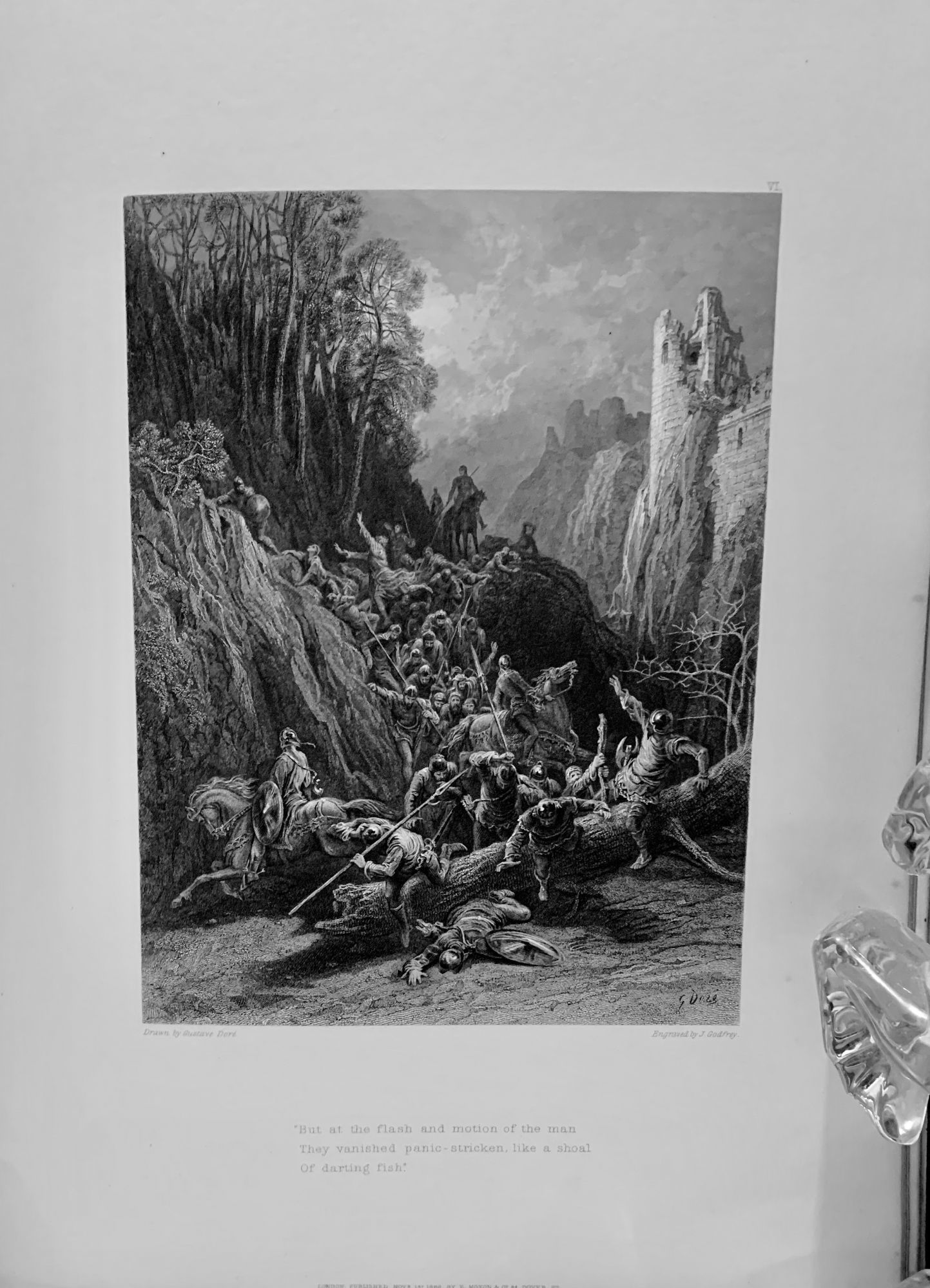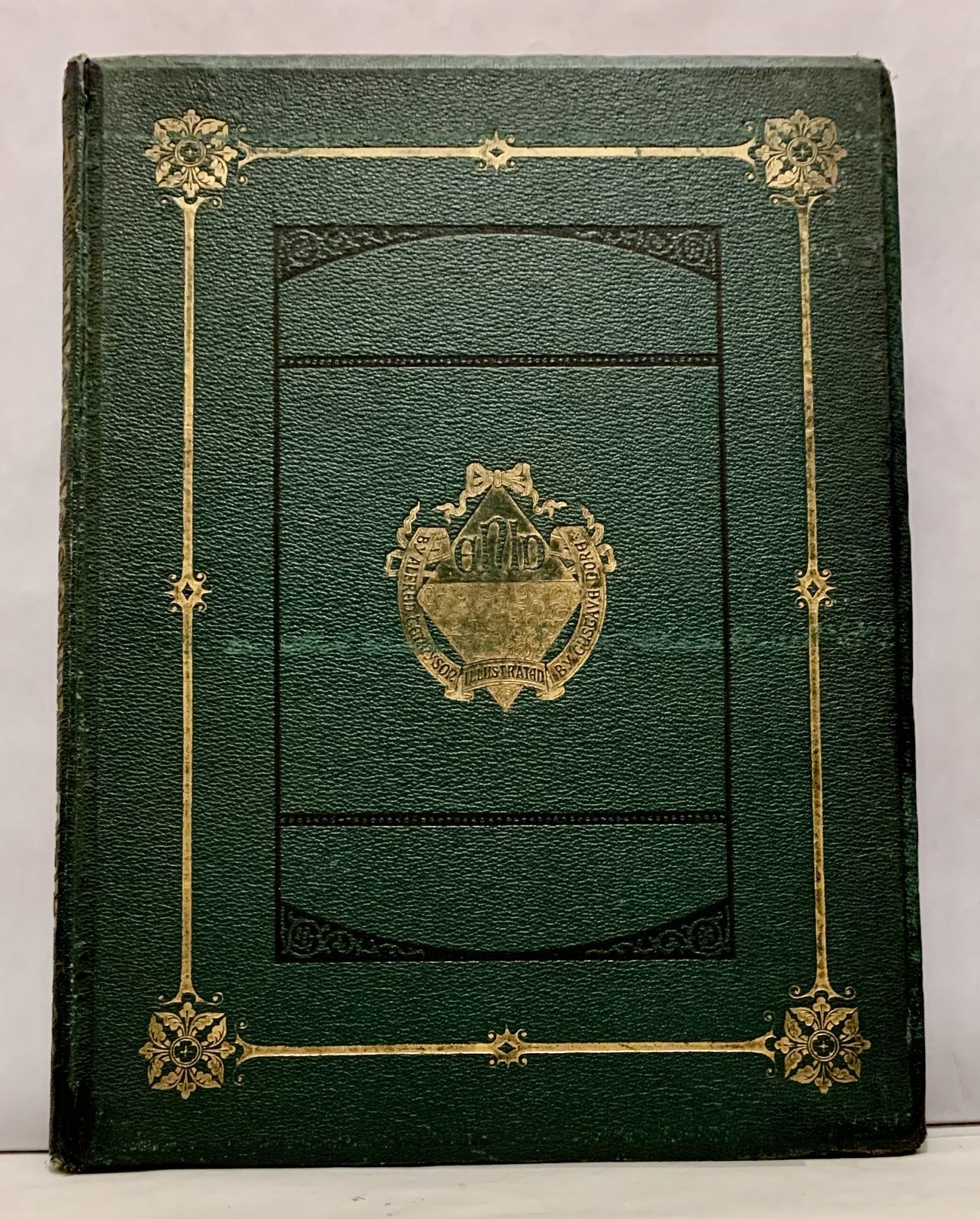 London: E. Moxon, Son, & Co, 1868. First edition. leather_bound. Orig. publisher green morocco, rectangular gilt front cover frame houses center gilt escutcheon, beveled edges. Aeg. Very good. Folio, 35.5 x 26.5 cm. Enid, Elaine, Vivien and Guinevere were part of a series published by Moxon, illustrated by Dore. Enid is the Fourth Part of Idylls of the King. Nine steel engraved plates: according to the publisher, the engravings on steel from Dore's drawings, were executed at a cost of nearly six thousand pounds; the only publisher to commission Dore for steel engraved work. Backstrip extremity nicks, lower corners rubbed, mauve endpapers, owner inscription half title in small neat hand dated 1870, modest toning to first few leaves.