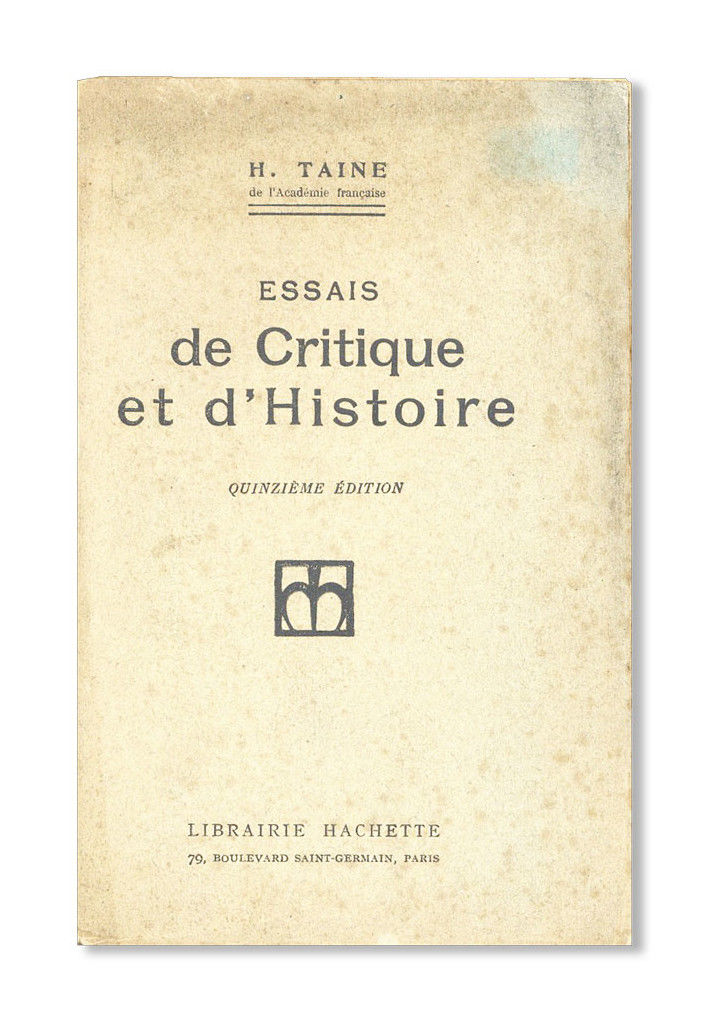 Paris: Librairie Hachette, 1929. Very Good. Paris: Librairie Hachette, 1920 [but 1929]. Quinzième Édition. Small octavo (18.5cm.); publisher's green printed card wrappers; [4],xxviii,303pp. Upper cover and spine toned to tan, the former a bit spotted, textblock uniformly toned, else Near Very Good. Collection of essays on literary theory by the major influencer of the works of French Naturalist novelists Zola and Maupassant.