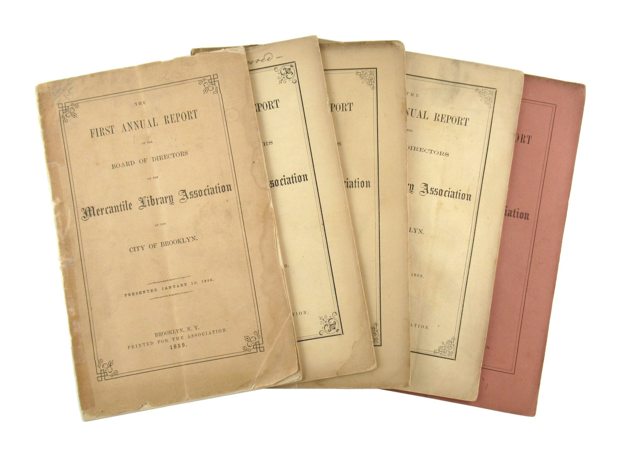 Collection of Five Early Annual Reports: Annual Report of the Board of Directors of the Mercantile Library Association of the City of Brooklyn [First, Second, Third, Fourth, and Eighth Annual]