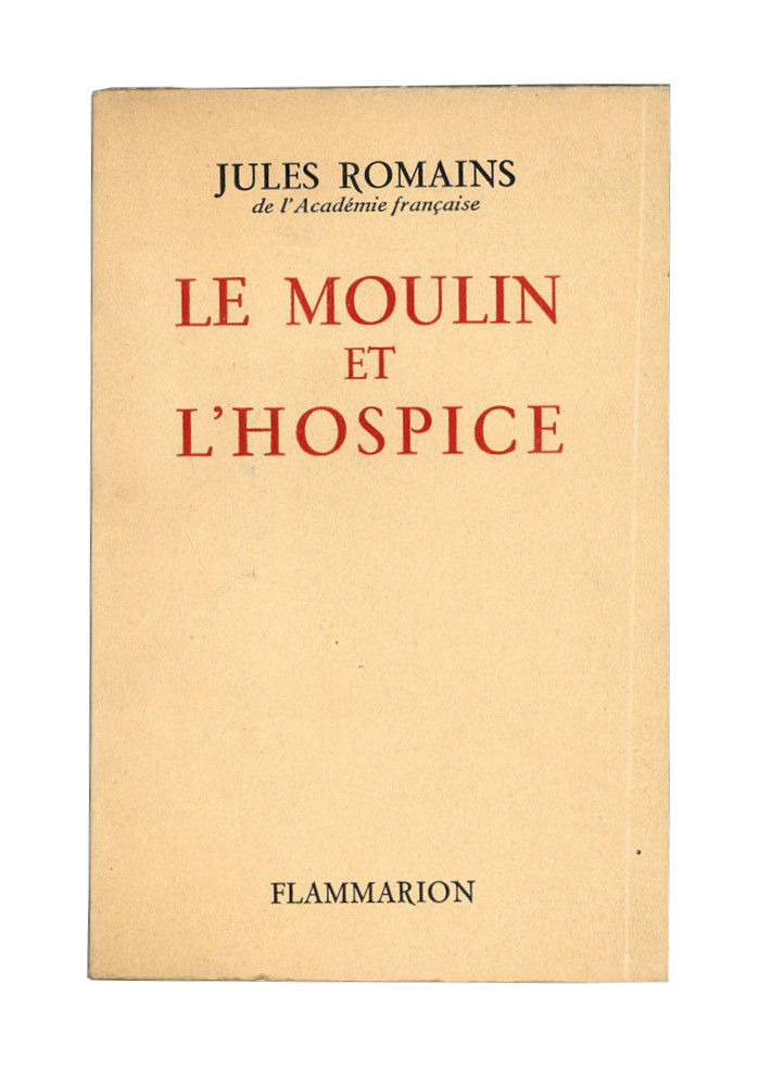 Le Moulin et l'Hospice [Limited Edition] Paris: Flammarion, 1949 By Jules Romain Paris: Flammarion, 1949. Fine. Paris: Flammarion, [1949]. First Edition. Limited to 500 copies printed on Alfa of which this is no. 186. Small octavo; publisher's cream card wrappers printed in red and black; 235pp. A Fine, unopened copy.