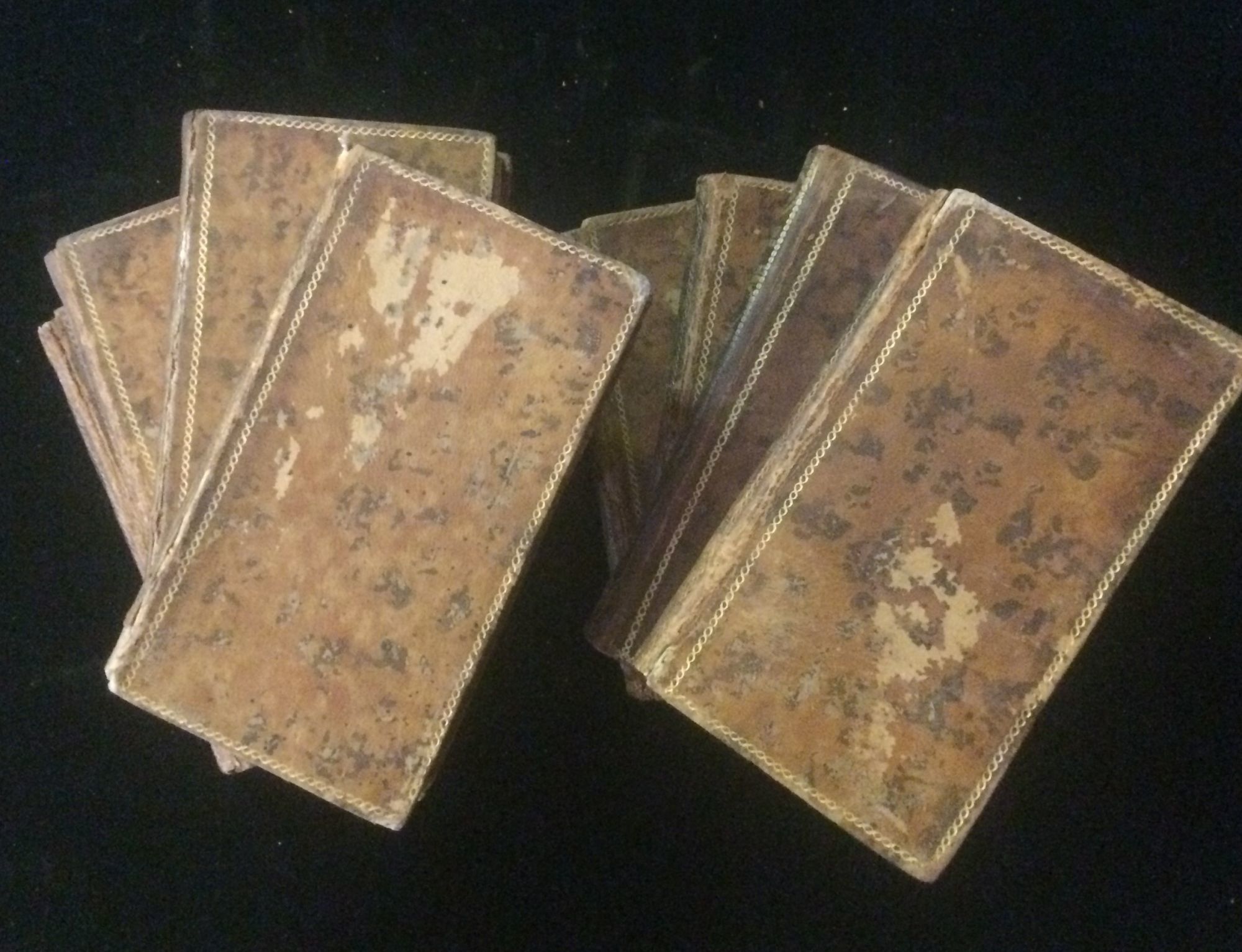 Paris: Libraries Associes, 1786. Later Edition. Hardcover. Very Good. 8 volumes, complete, 12mo, old calf, worn, gilt and title and volume number on black leather to spine. Some loss mostly at spine ends, most notably volumes 4 and 6. Ownership set of Nathan Appleton, father-in-law of Henry Wadsworth Longfellow, with his ownership signature "N Appleton" at the top of the title page to each volume. With the calling card of Mr. and Mrs. Ernest Longfellow, Henry' son and his wife, laid-in. Pencilled notes, in unidentfiable hand, prelims volume 1.