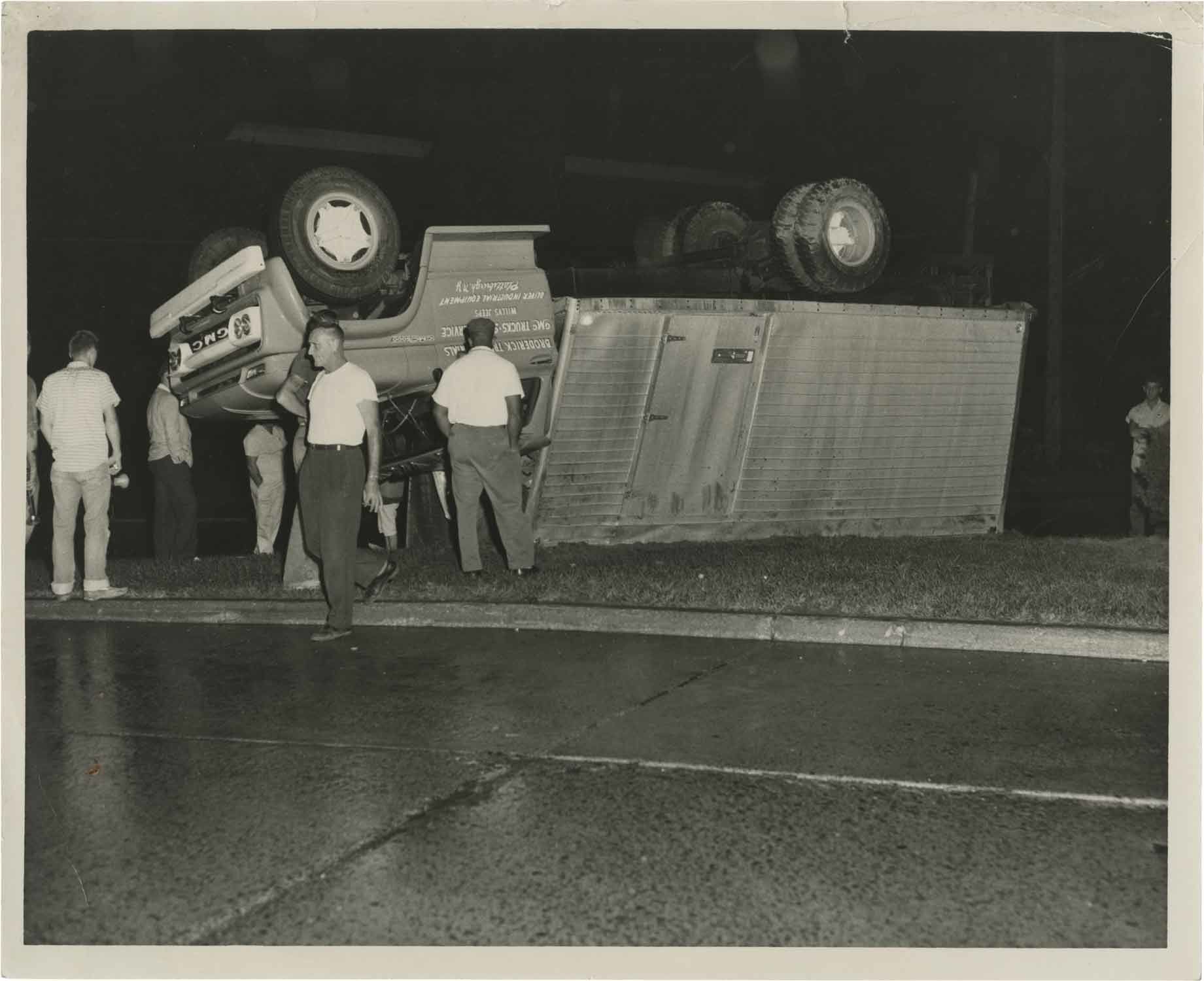 N.p.: N.p., 1968. Archive of 48 vintage photographs of car accidents scenes in the Columbia County, New York area, from the years 1961-1965, 1966, and 1968. With the stamp of Lee's Studio in Chatham, NY on the verso of the majority of photographs, along with occasional manuscript annotations. Most photographs housed in sleeves with annotations detailing dates, locations, and occasionally noting whether or not the accident was fatal.