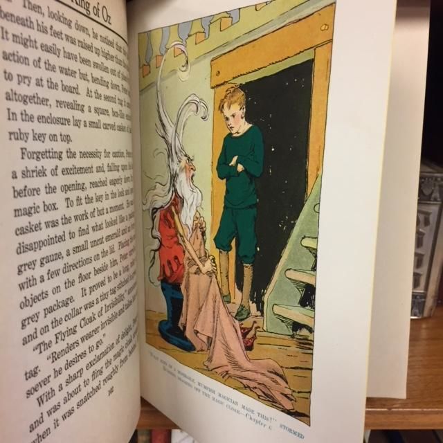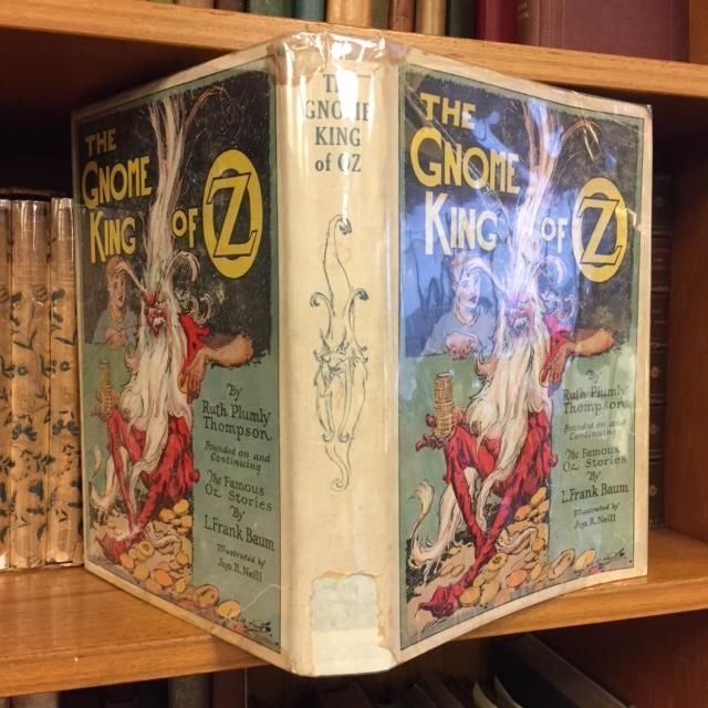Chicago: Reilly & Lee, 1930. Early Reprint. Hardcover. Quarto, VG/G+; 282 pages; Green spine with pictorial illustration on front board, black titling to spine; "Reilly & Lee" on spine; Jacket is torn in several spots, large chip missing from area where publisher would be listed; Flap lists Oz titles to The Yellow Knight of OZ (published 1930); Outer edge of text block yellow, interior age toned with small spot affecting the lower edge of the last few pages, otherwise clean; Previous owner's name inked; Shelved case 14. 1293609. Shelved Dupont Bookstore.