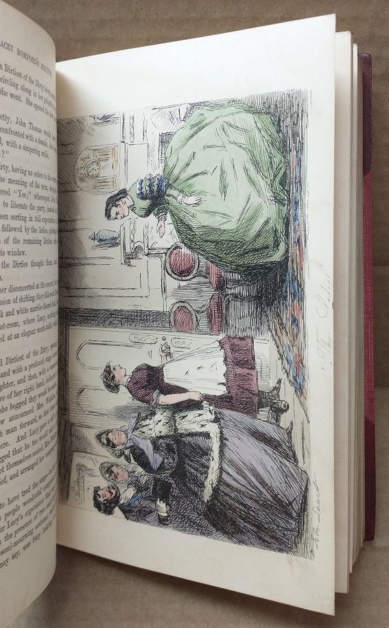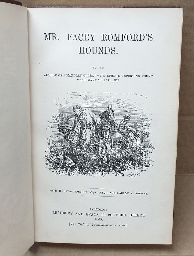 London: Bradbury and Evans, 1865. First Edition. Hardcover. 8vo., 391pp.; VG; paneled red spine with gilt lettering and tooling, contemporary half red morocco with cloth boards; marbled endpapers; gilt text block; minor wear to head of spine, spine edges, and corners of boards; Hand-colored engraved frontispiece, 23 hand-colored steel engravings, and numerous wood engravings in the text by John Leech and Hablot K. Browne; TJ consignment;