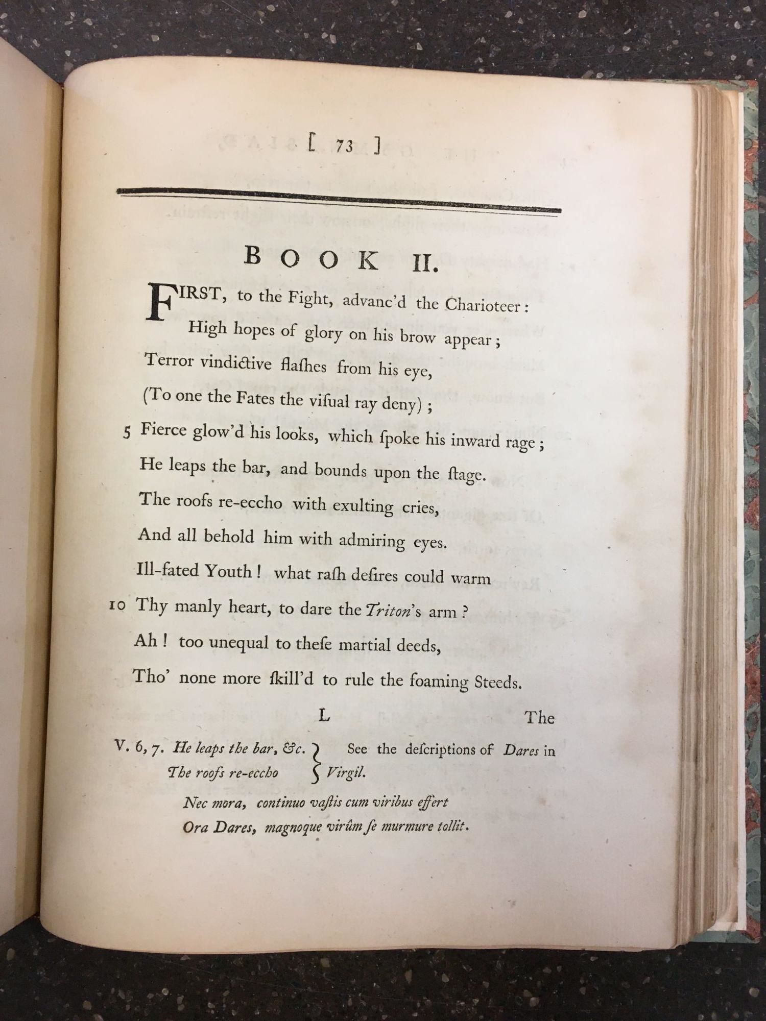 London: printed for G. Kearsley; and J. Ridley, 1777. First Edition. Hardcover. Quarto, 185 pages; VG; quarter bound in brown calf, marbled boards, black label with gilt titling to spine; mild rubbing to binding; with frontispiece; page 185 with archival rebacking, hole in archival paper for the errata to show through; some minor archival rebacking to other page edges. Shelved Room A Oversized. 1324601. Special Collections.