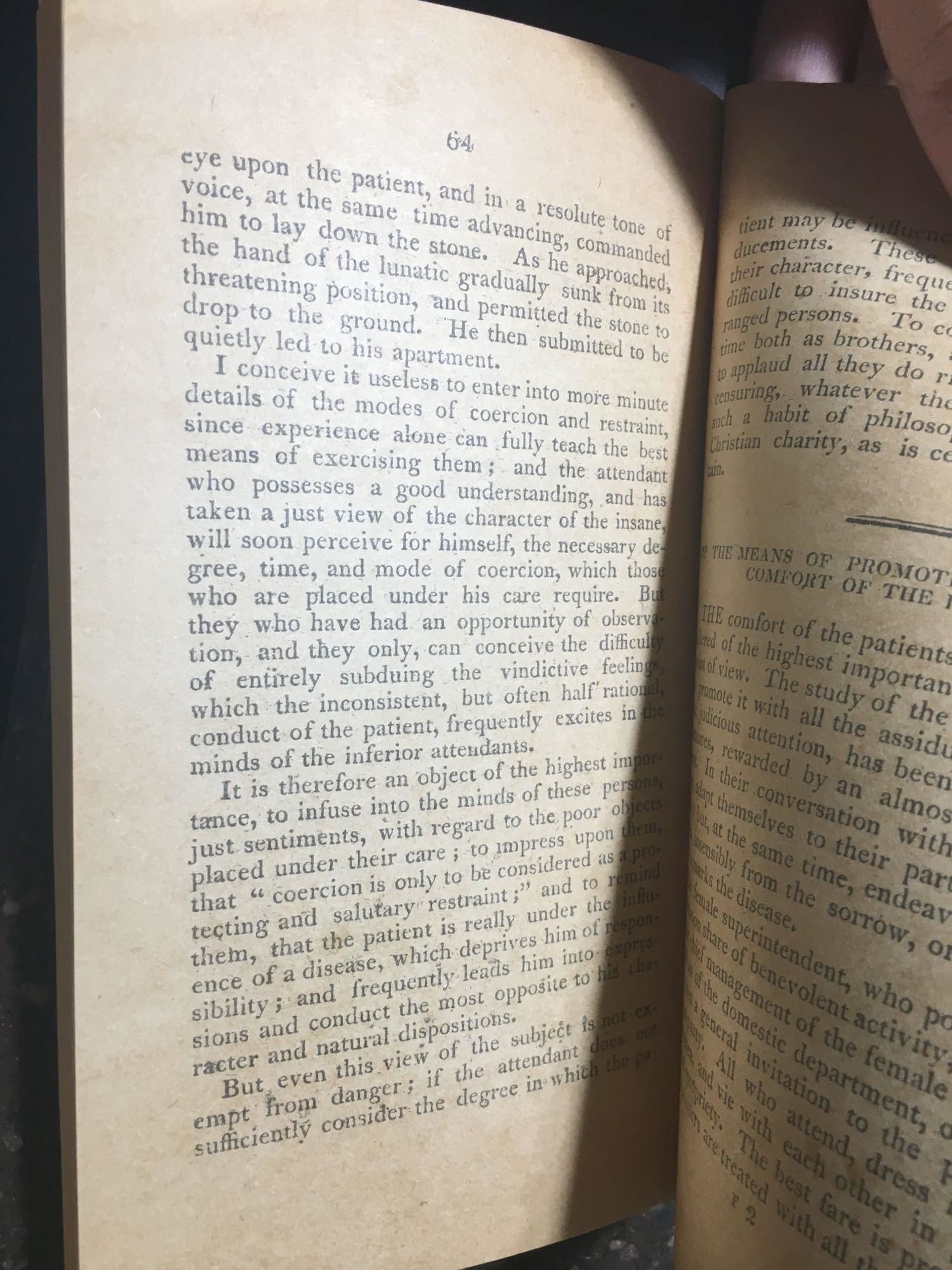 Philadelphia [Nutley, N.J]: Kimber and Conrad [Roche Laboratories], 1814 [1967]. Facsimile Reprint. Softcover. Octavo, 72 pages; VG; in olive wraps, plain spine; mild wear; small damage to interior of rear wrap where something was removed; Facsimile reprint, abridgement of "Description of the Retreat ... by Samuel Tuke" on p. [19]-72.; Original imprint: Philadelphia : Kimber and Conrad, 1814.;