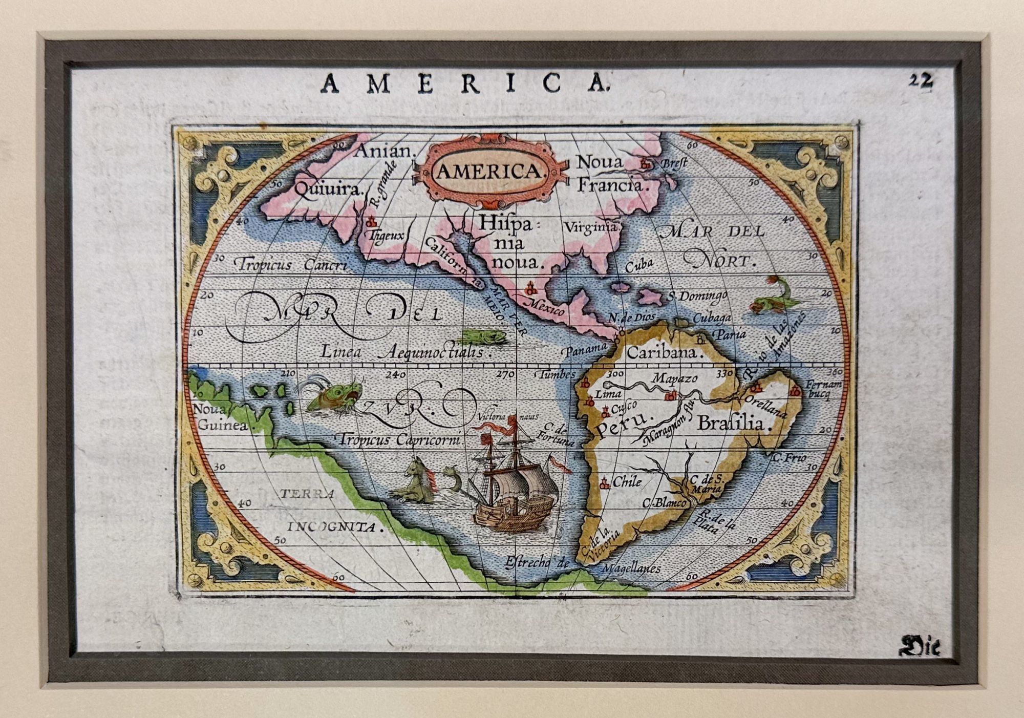2) America, from Gerard Mercator’s Atlas Minor. This extremely popular volume was first published in 1607, but this map is c. 1610.